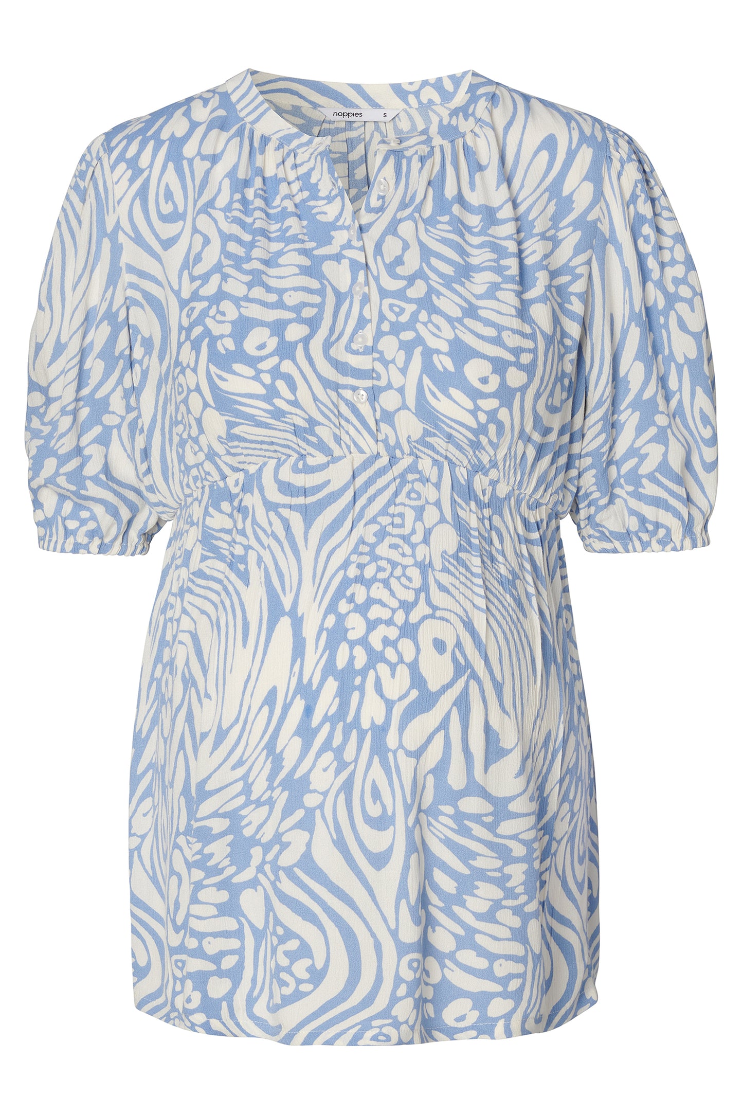 Umstands- und Stillbluse aus sommerlicher Lochspitze aus weicher GOTS-zertifizierter Baumwolle. Die Bluse verfügt über eine elastische Empire-Linie, kleine Puffärmel und einen Rundhalsausschnitt mit Knopfleiste. Nach der Geburt erhältst du dank der kurzen Knopfleiste einen einfachen Stillzugang.