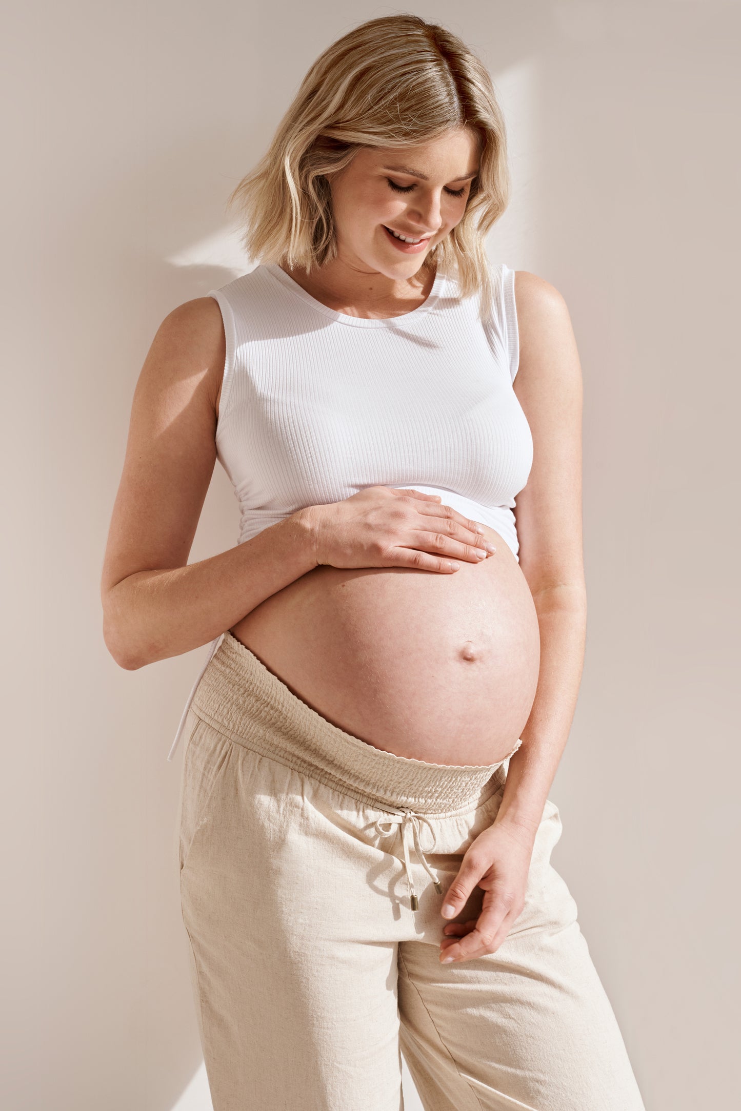 Umstandstop aus weichem Rippjersey mit seitlichen Raffungen. Über den integrierten Kordelzug kannst du flexibel die Länge deines Tops bestimmen und dieses auch als modernes Crop Top tragen.