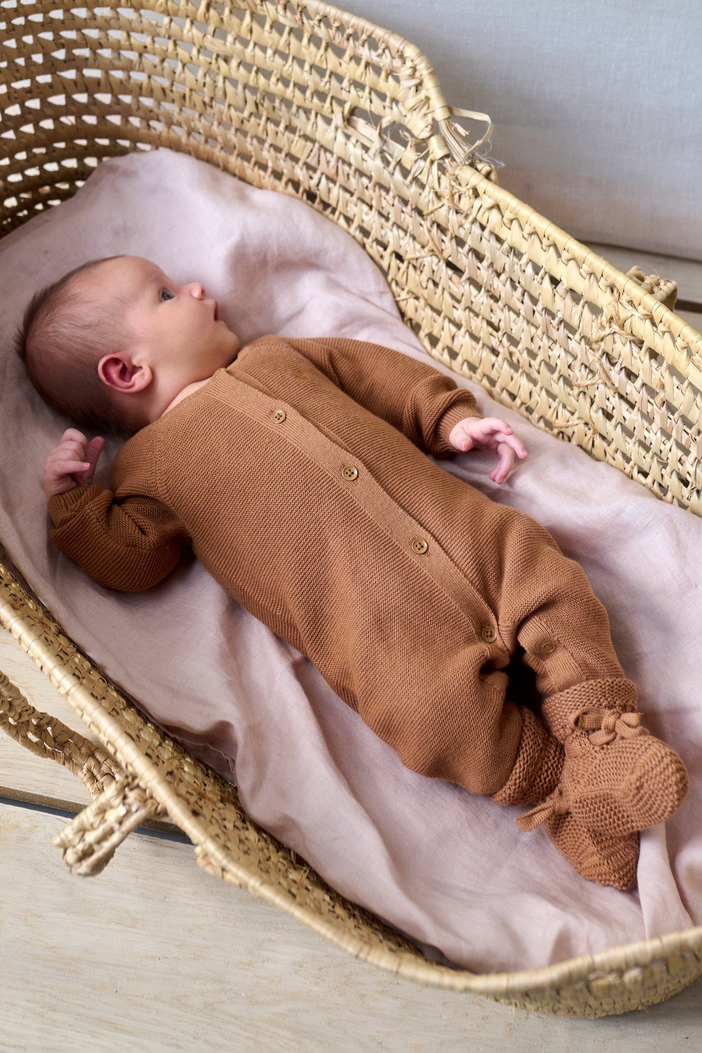 Baby-Strickmütze aus reiner und besonders weicher Bio-Baumwolle. Das gerippte Bündchen sorgt dafür, dass das Mützchen perfekt passt und nicht rutscht. Passt perfekt zur Organic Baby Wickel-Pullover taupe.