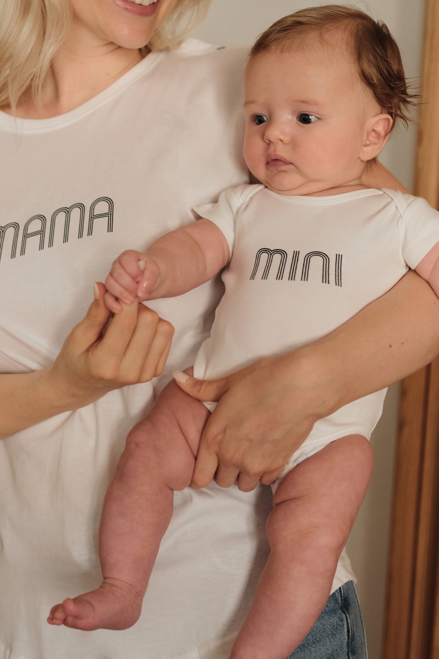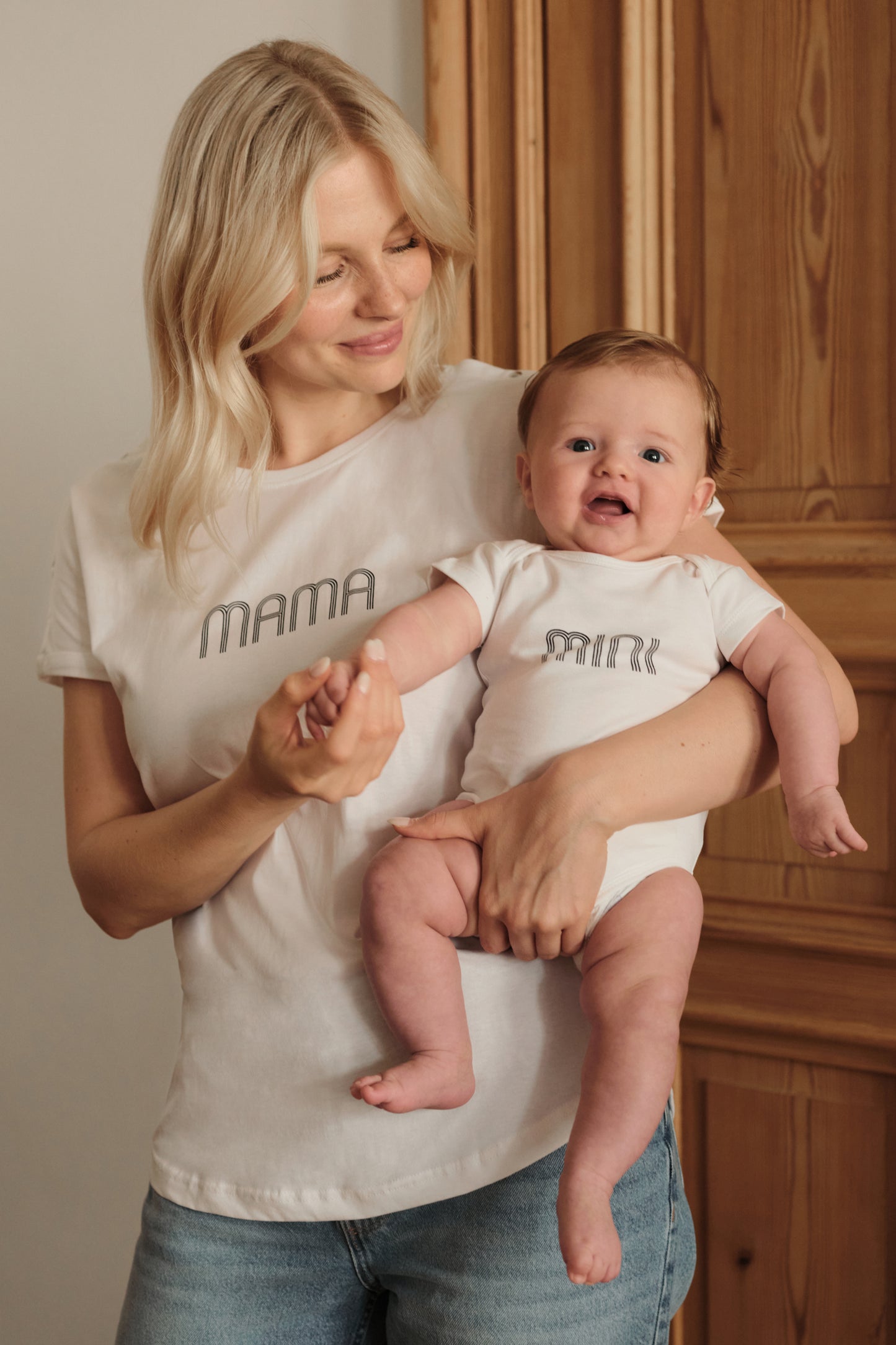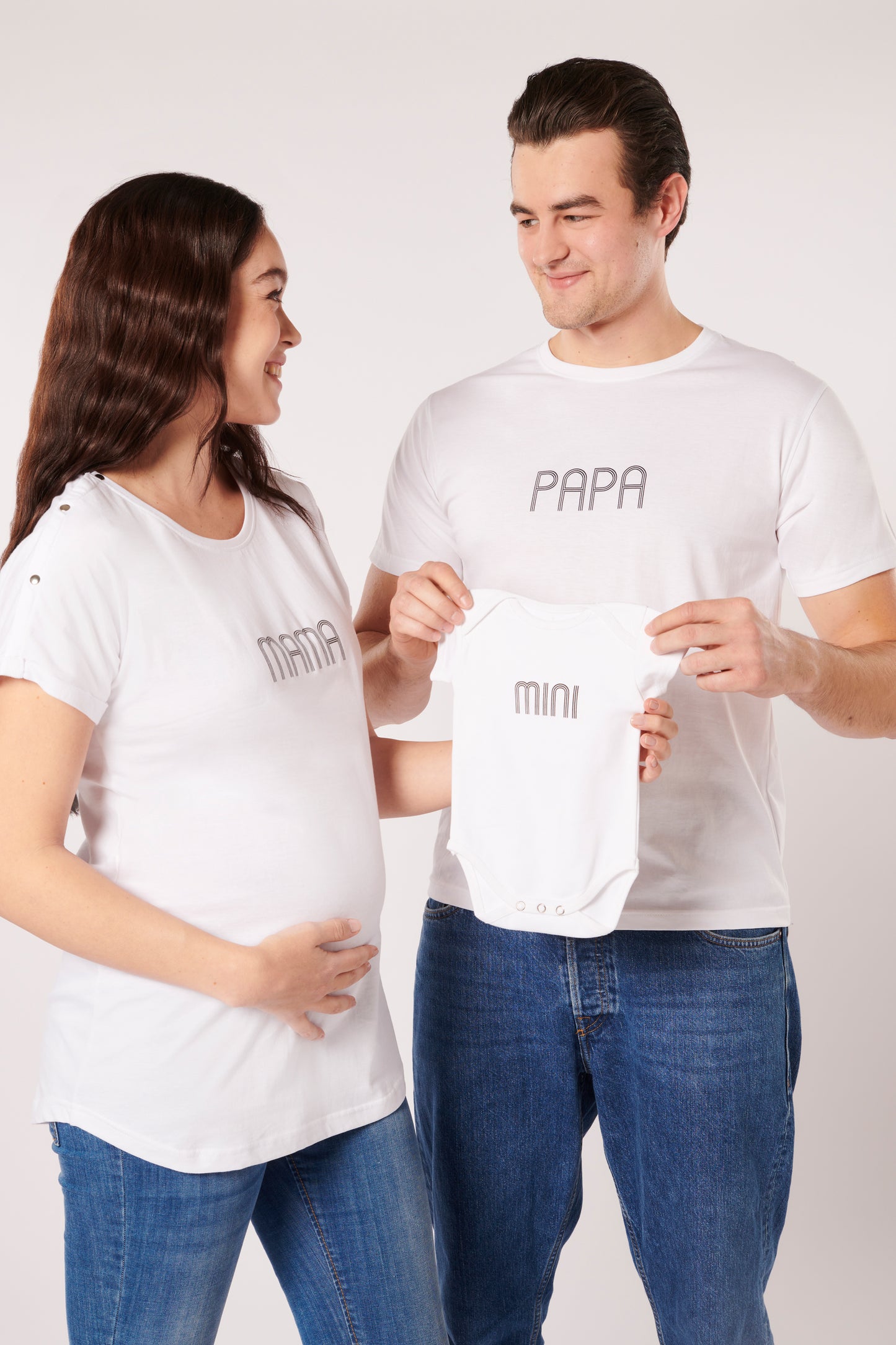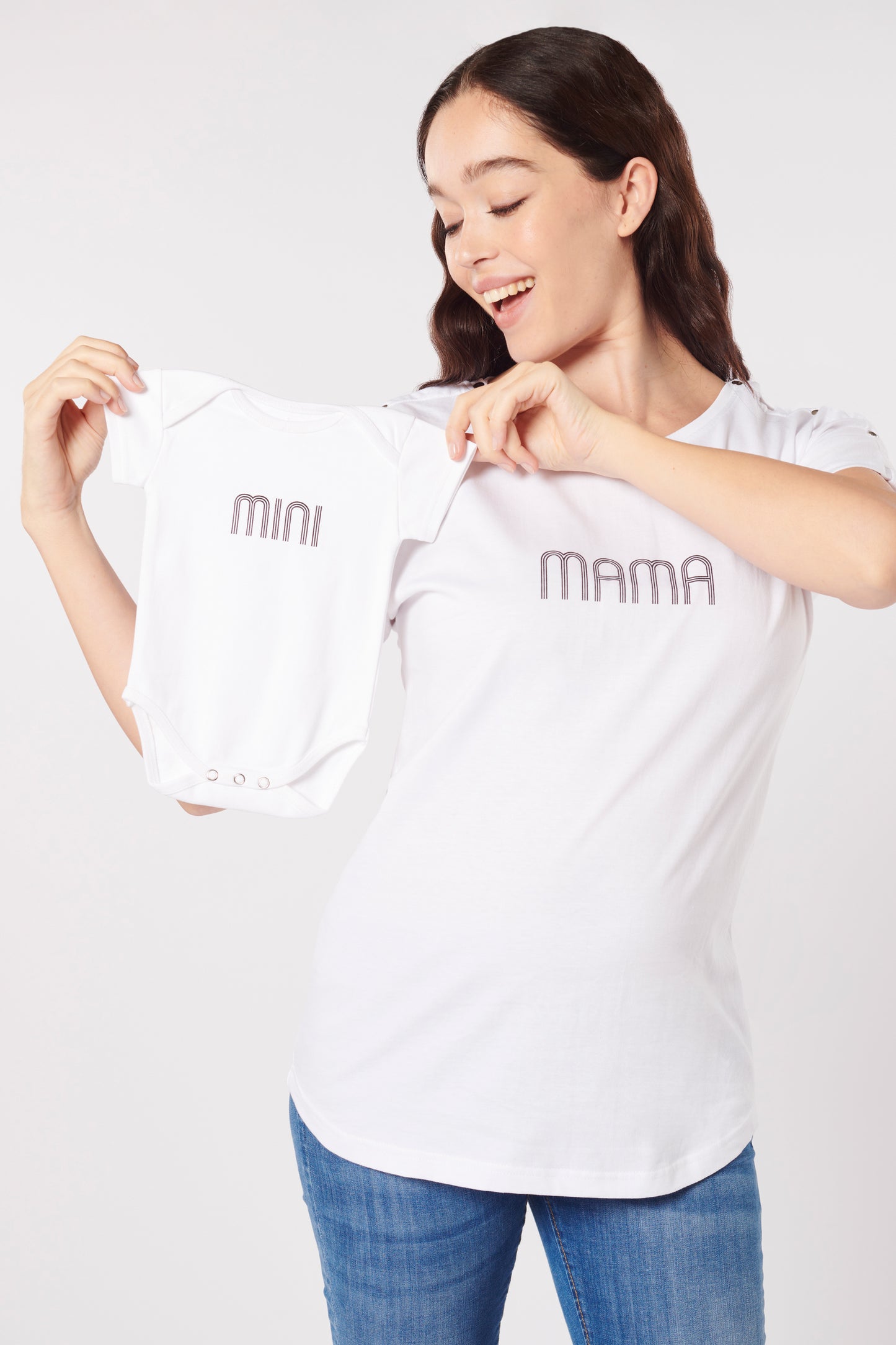 Bei uns findest du Shirts, die an dir und an deinem Baby toll aussehen, wie zum Beispiel das weiße Mama-Stillshirt mit passendem Baby-Shirt aus superweicher Bio-Baumwolle. Auch passende Sweater mit „Mama“ und „Baby“ Aufschrift haben wir für euer Mama-Kind-Outfit.