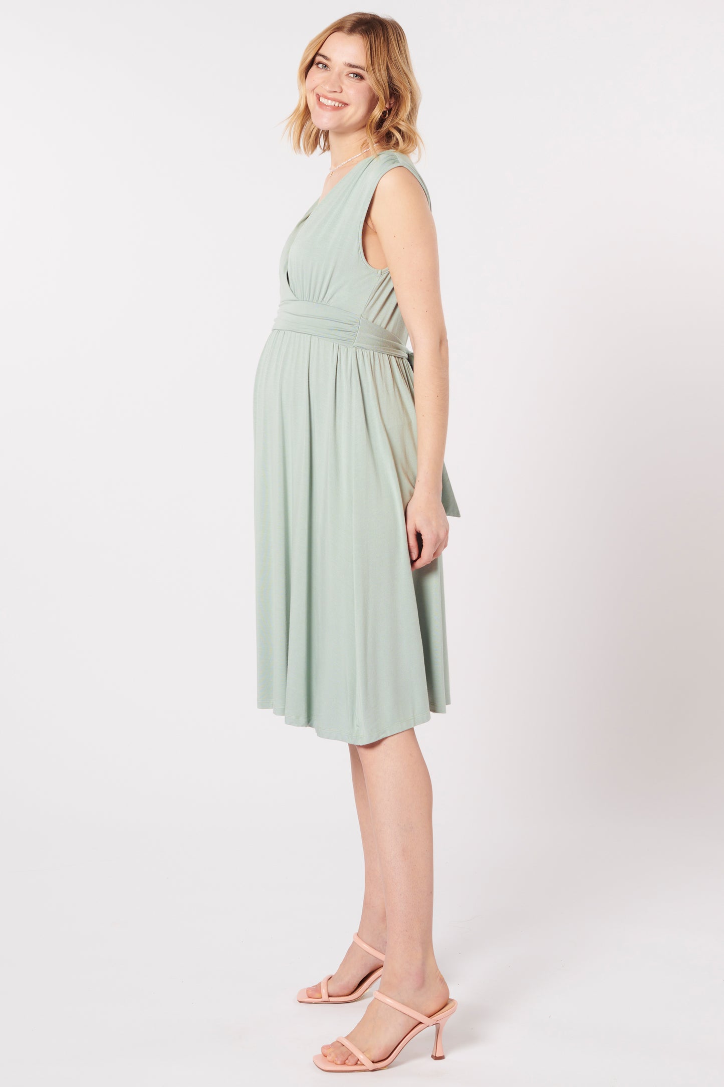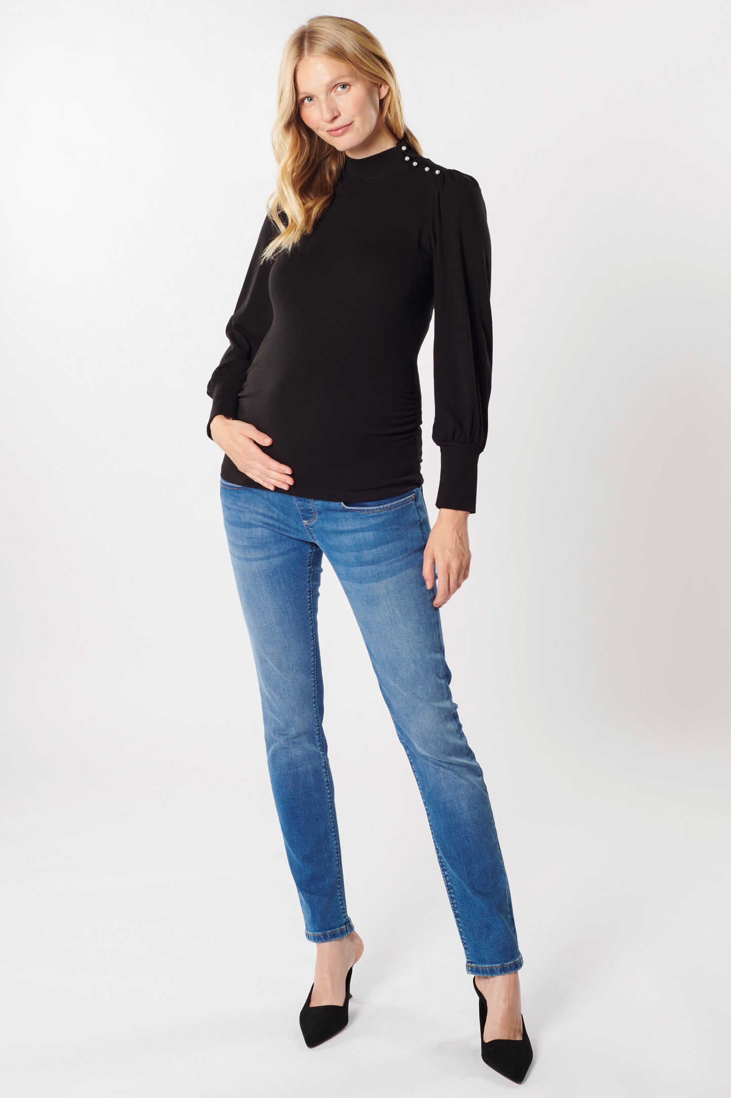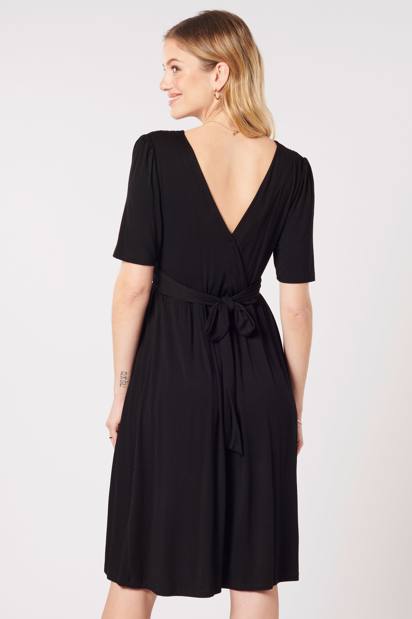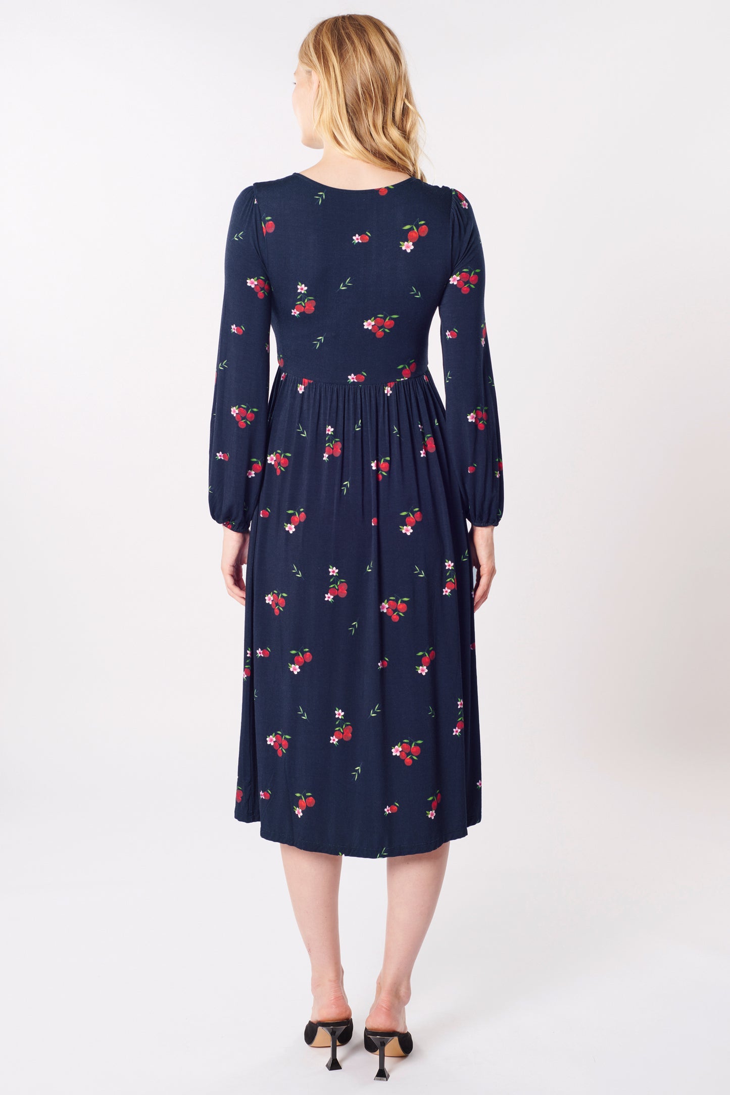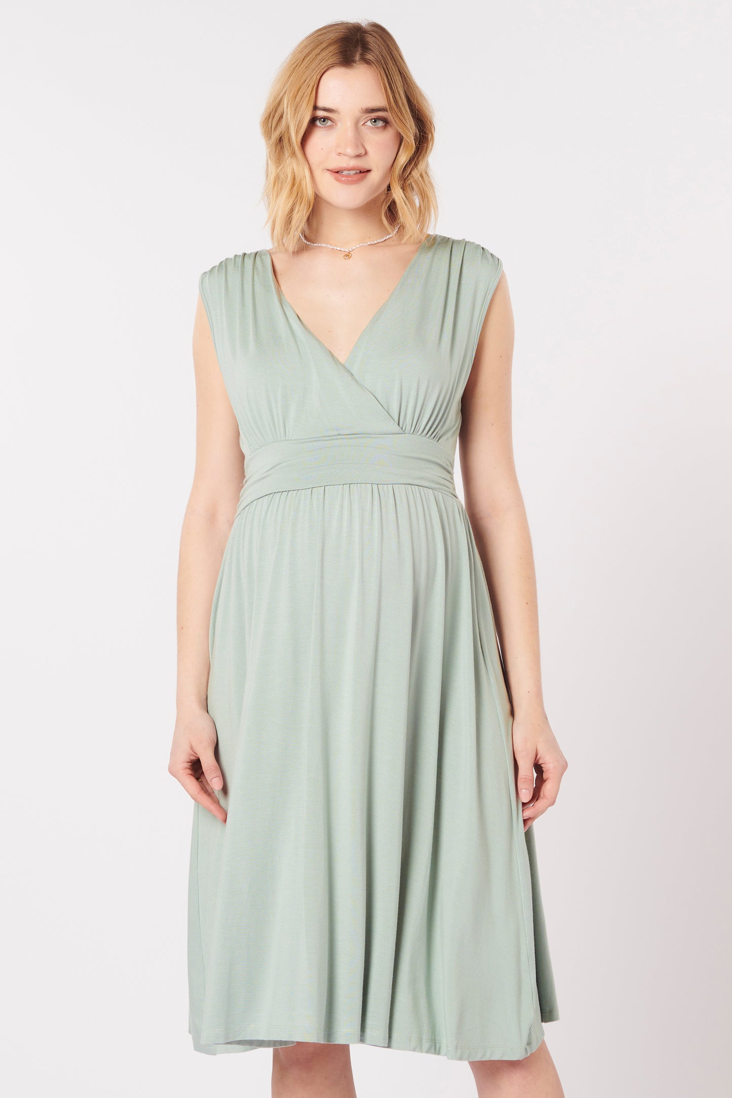 Umstands- und Stillkleid mit 3/4 Ärmeln, Oberteil aus weichem Jersey und schwingendem Rockteil aus reiner Viskose und mit Blumen Print. Das Oberteil schmiegt sich angenehm an deine Brust, während der Rock dank kleiner Raffungen locker über deinen Babybauch fällt. Für einen einfachen Stillzugang einfach die oberste Stofflage des Bustiers anheben und die darunter liegende, nach unten schieben. So wird deine Brust frei und du kannst dein Baby bequem darin stillen. Das Kleid ist durch den vorteilhaften Schnitt sowohl mit als auch ohne Babybauch geeignet.