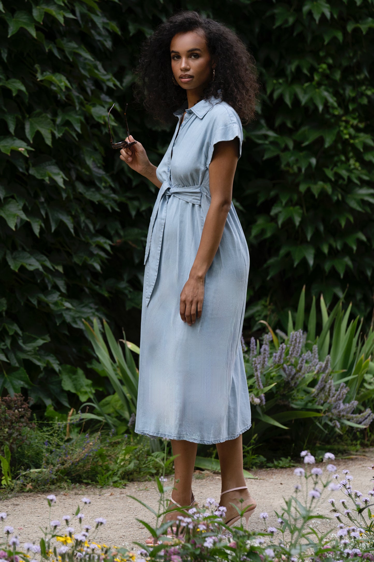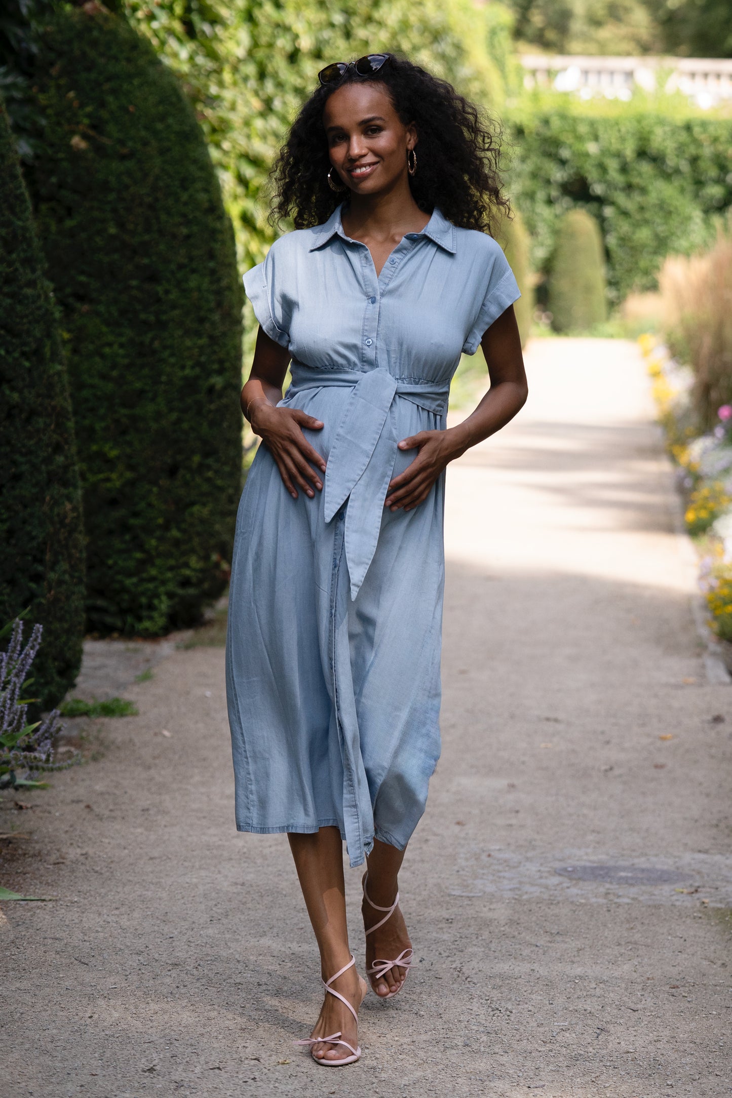 Umstands- und Still-Hemdblusenkleid aus nachhaltigem, angenehmem Lyocell Stoff in Denim Optik. Die integrierten Bänder kannst du vorne oder hinten binden, um deine Silhouette zu betonen