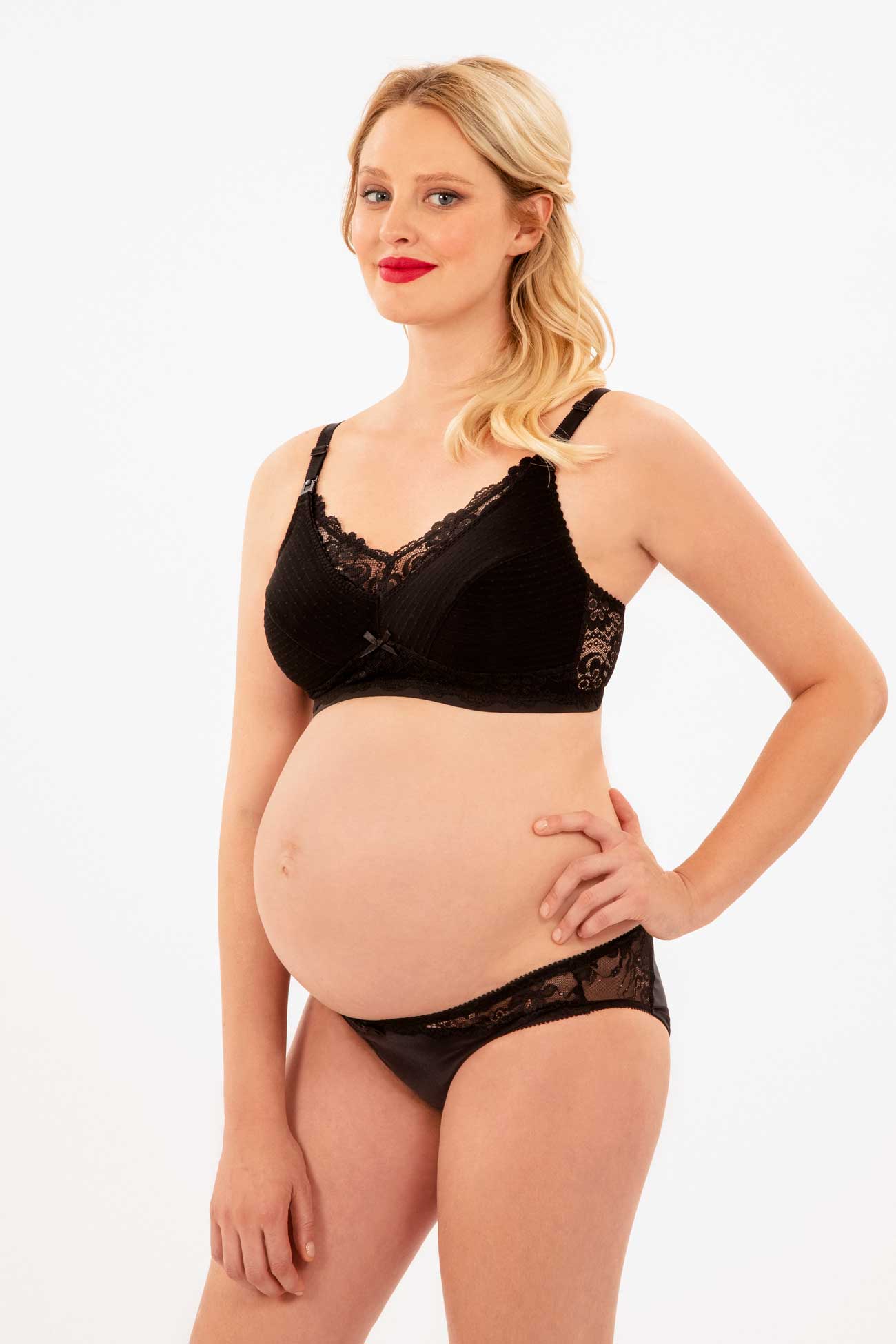Bei einem Schwangerschafts BH solltest du außerdem darauf achten, dass er sich mit dem engsten Haken schließen lässt. So kann dein Umstands BH bequem mit deinem Brustkorb mitwachsen, denn dieser wird sich in den nächsten Monaten ausdehnen. Die Träger sollten nicht einschneiden und die Cups dürfen deine empfindliche Brust nicht eindrücken.