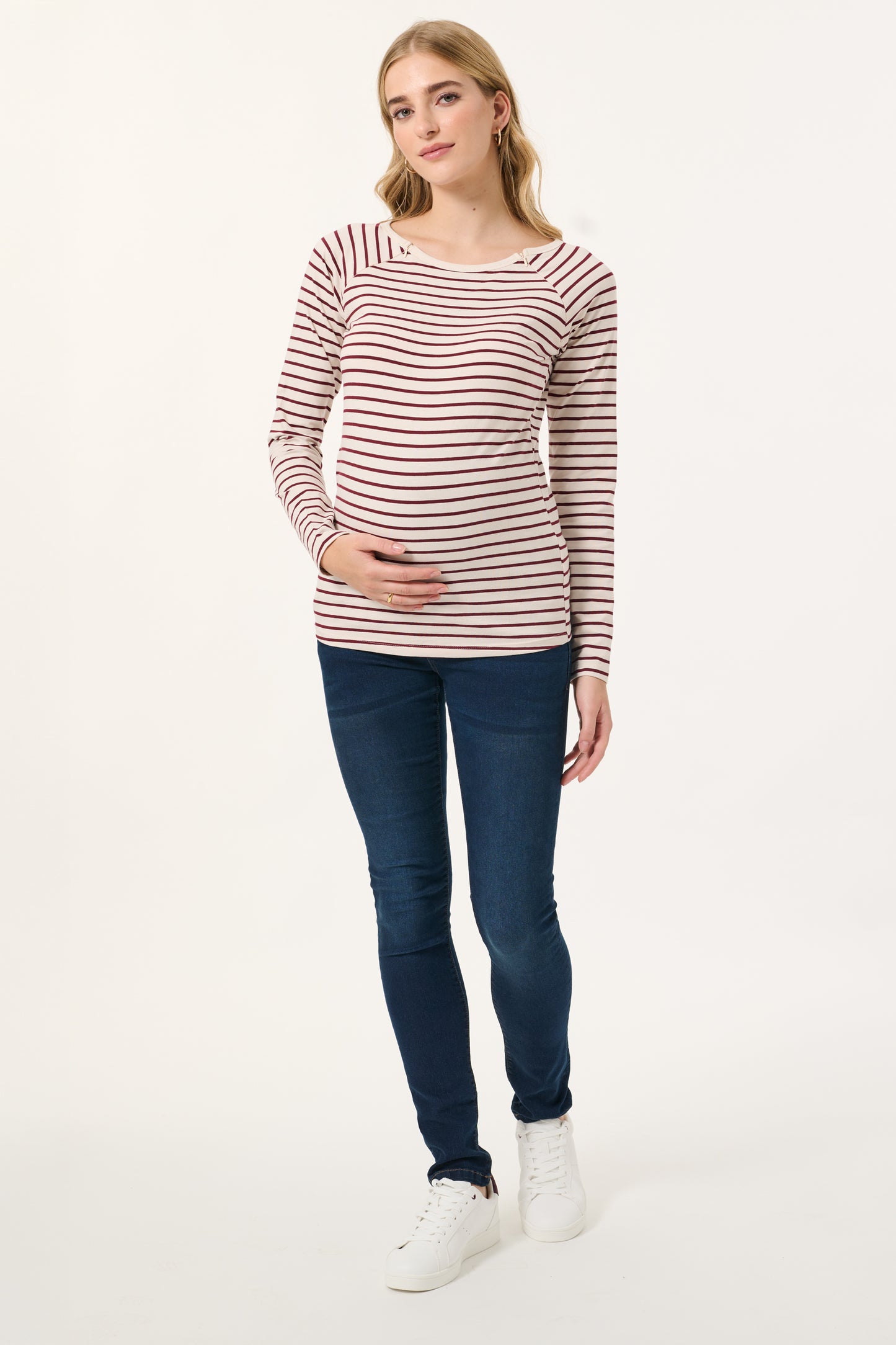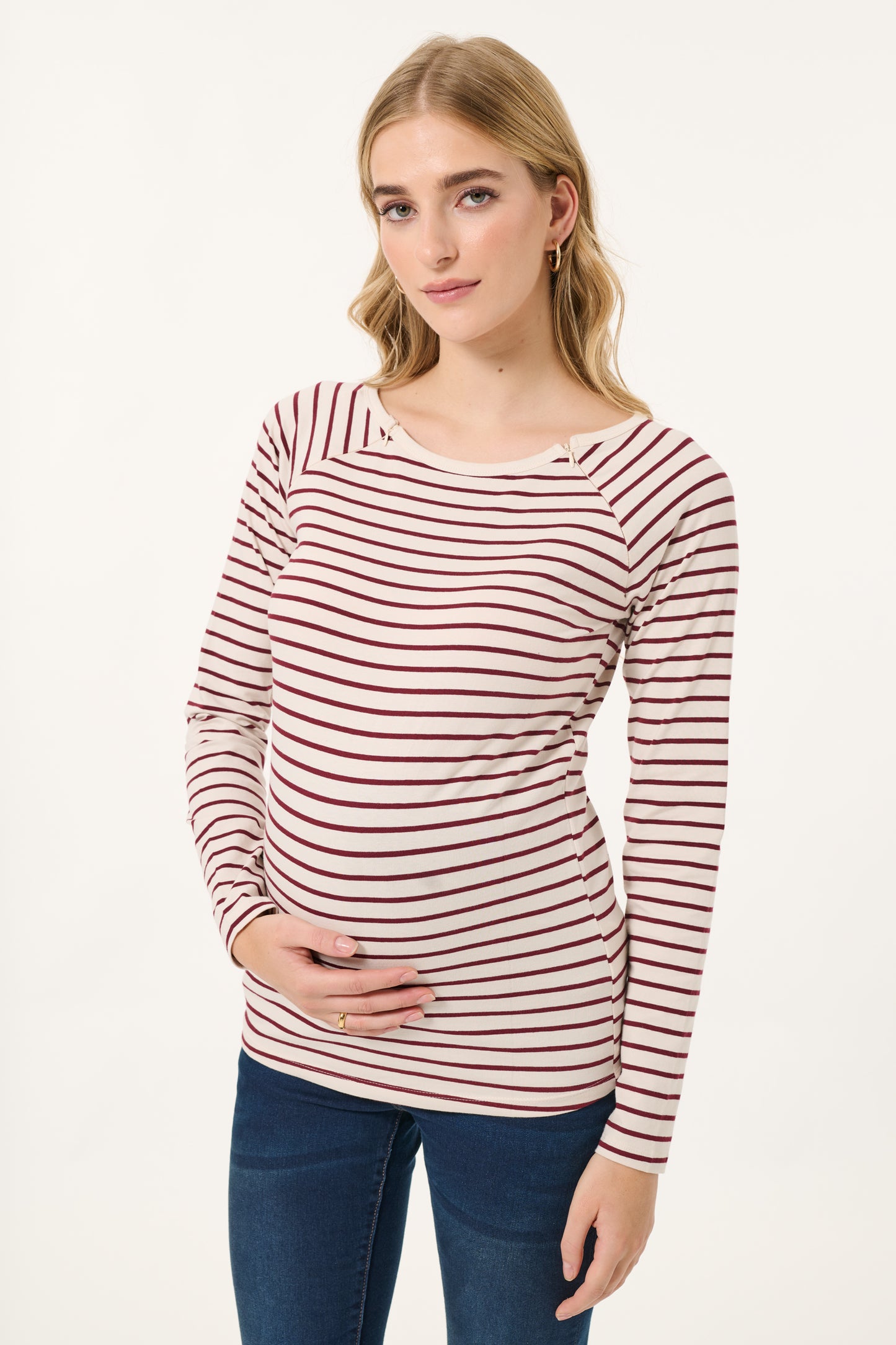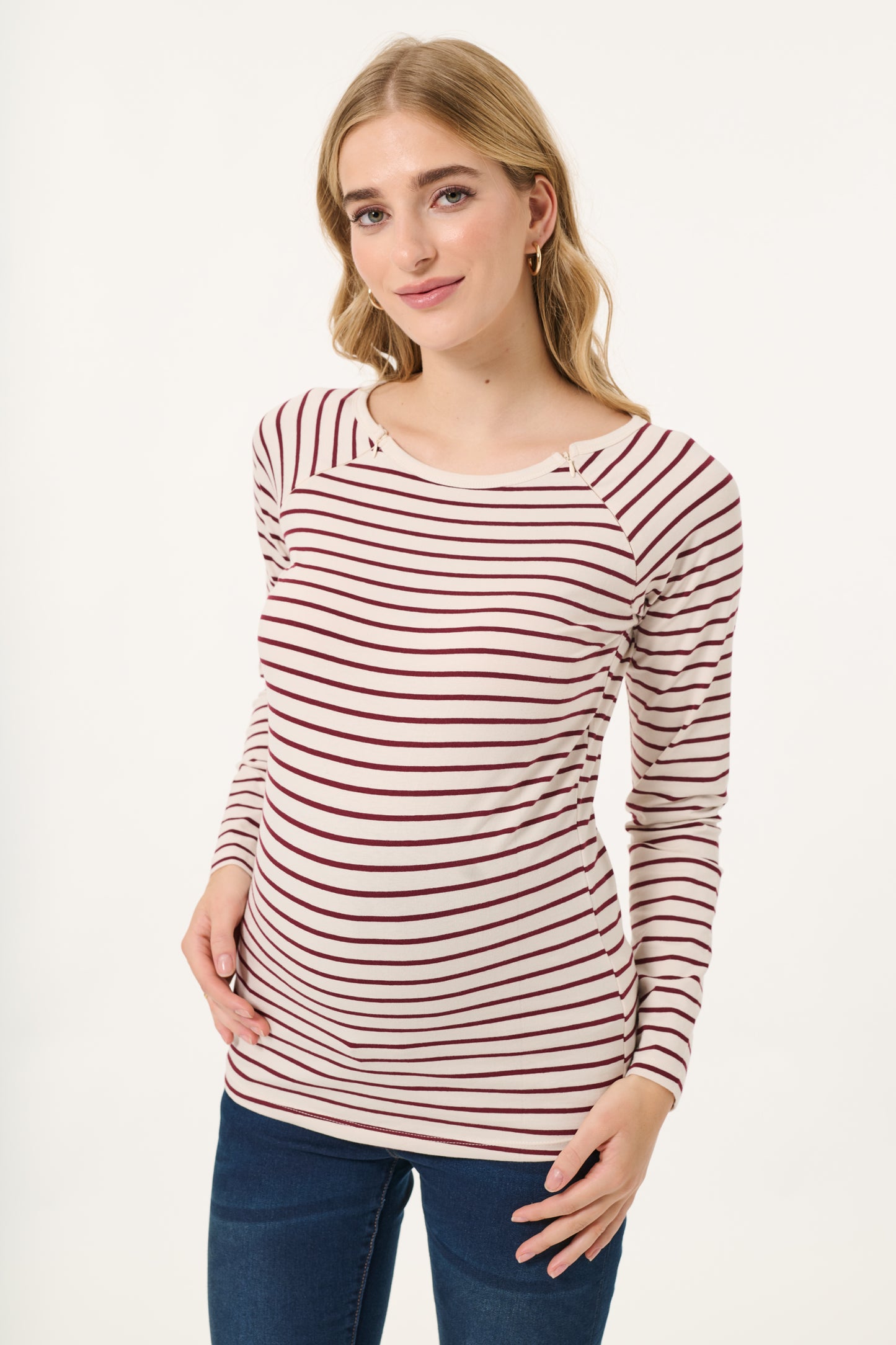 Umstands- und Stillshirt mit Streifenmuster aus angenehmer, nachhaltiger Bio-Baumwolle. Dank der integrierten Reißverschlüsse hast du einen diskreten Zugang zum Stillen