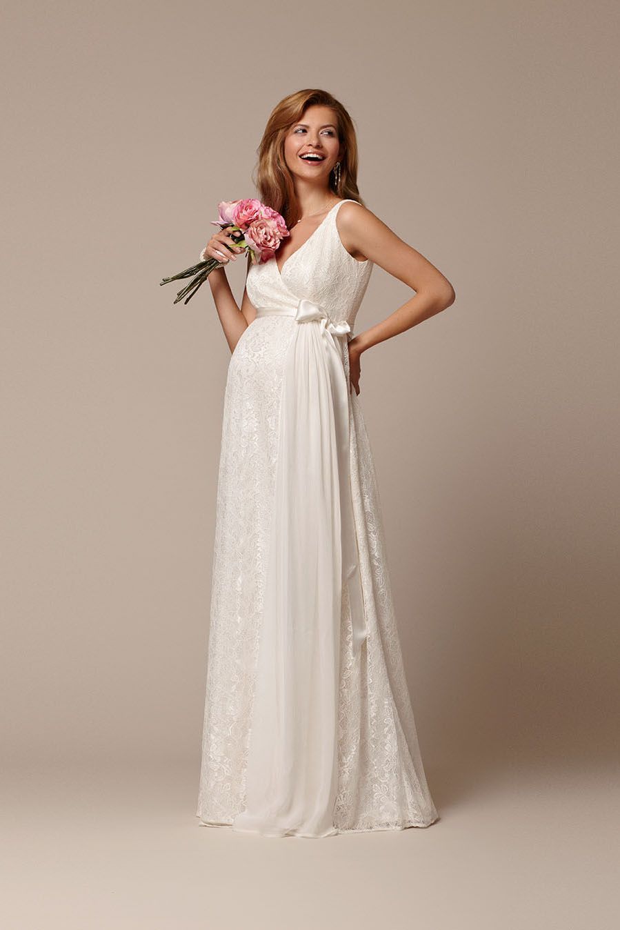 Viele Frauen träumen von einem langen Brautkleid. Und auch während deiner Schwangerschaft kann dieser Wunsch in Erfüllung gehen. Unsere langen Umstandsbrautkleider sind so entworfen, dass deine Figur optimal in Szene gesetzt wird, indem deine Empire Line betont wird.