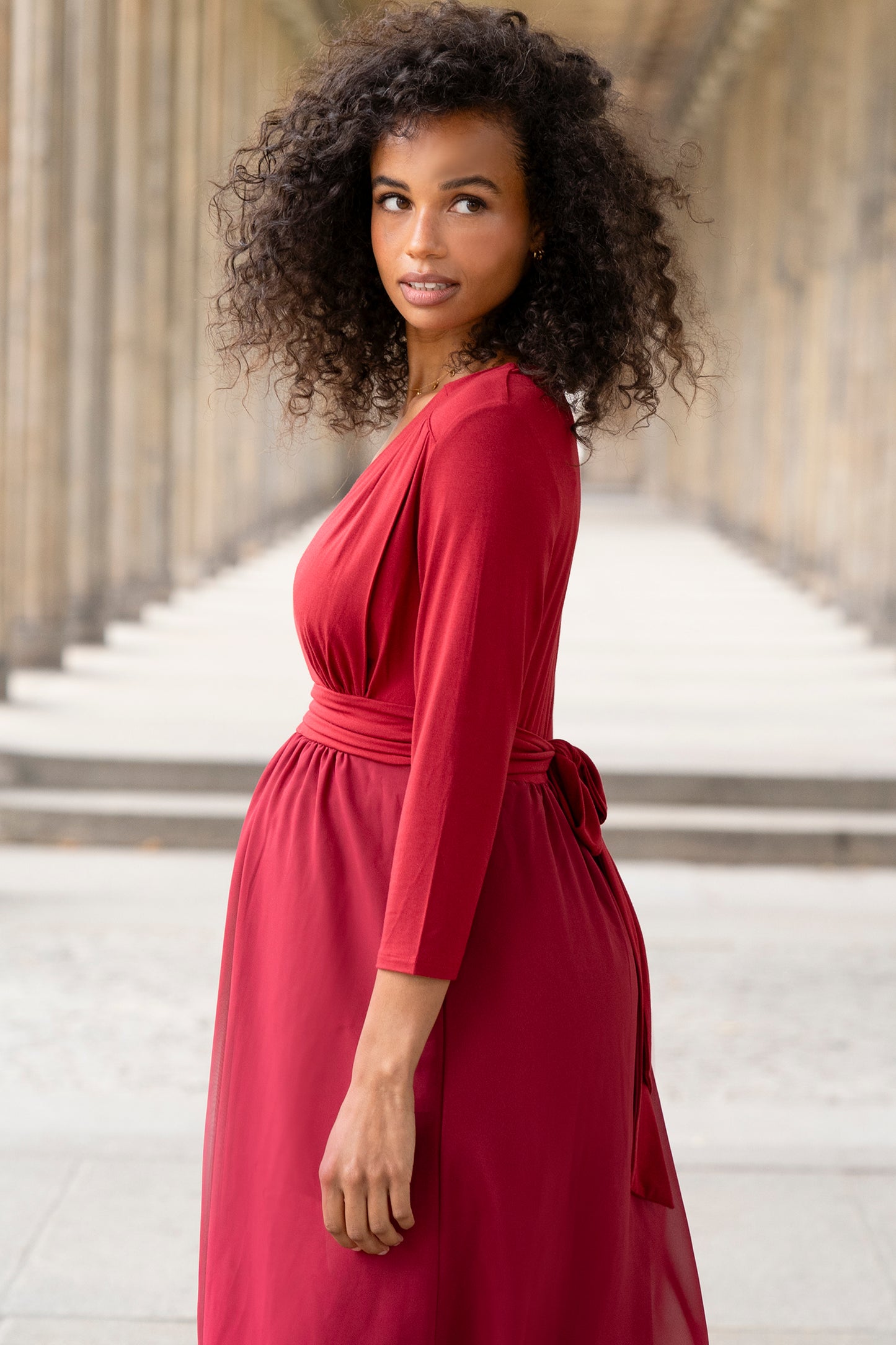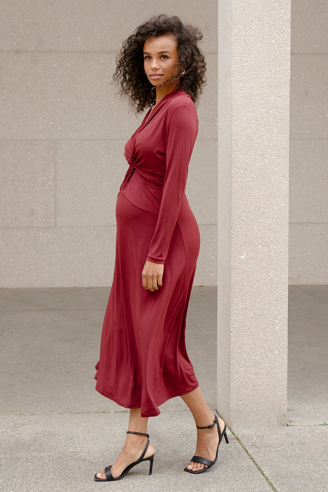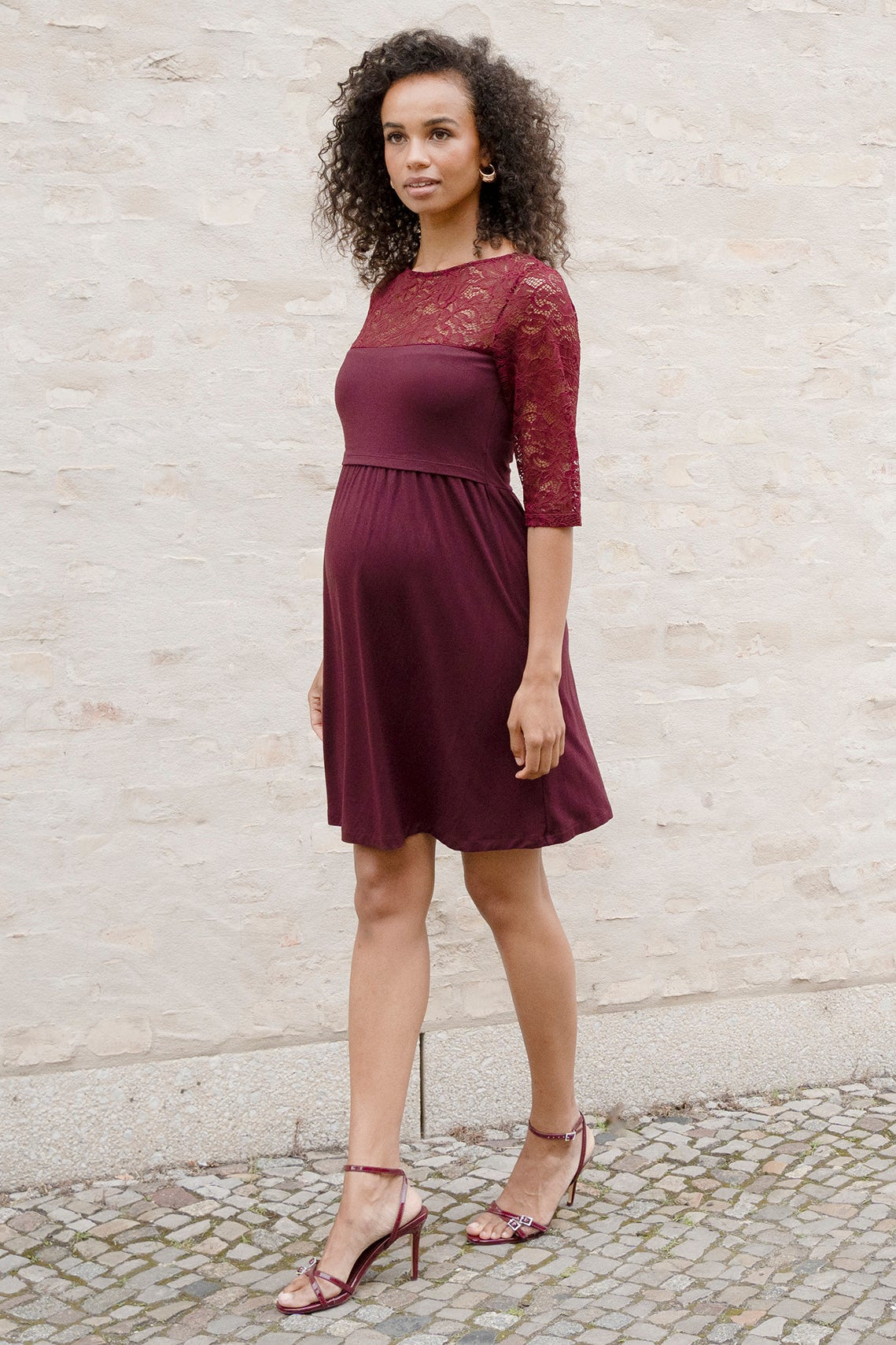 Umstands- und Stillkleid aus nachhaltiger Bambus-Viskose, mit elegantem Spitzenbesatz und transparenten 3/4 Ärmeln. Das elastische Oberteil sitzt körpernah bis zur Taille und der Rock in A-Linie fällt locker über deine Silhouette. Durch den angenehmen Bambusjersey und den vorteilhaften Schnitt passt sich das Kleid flexibel an deine Silhouette an, mit und auch ohne Babybauch.