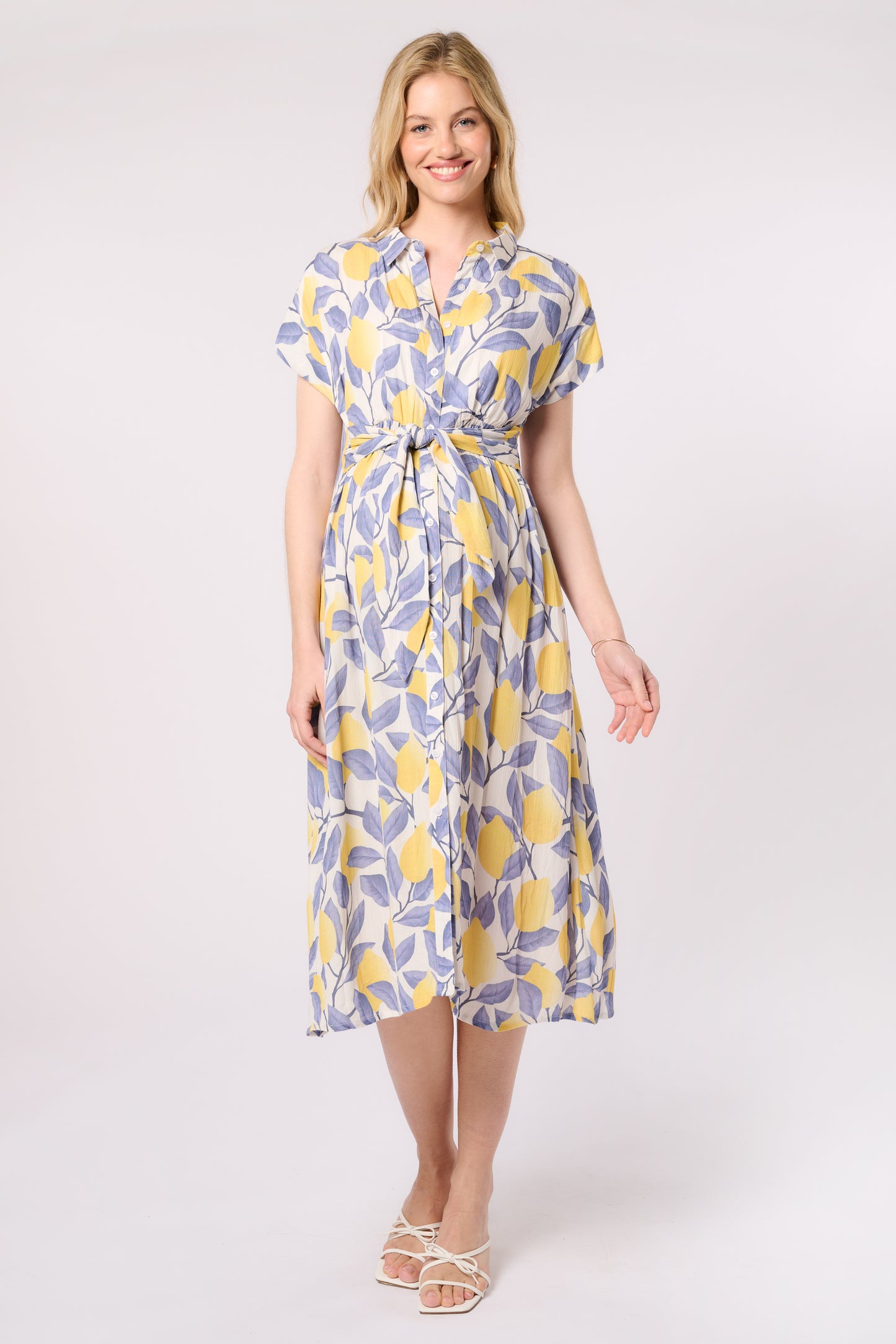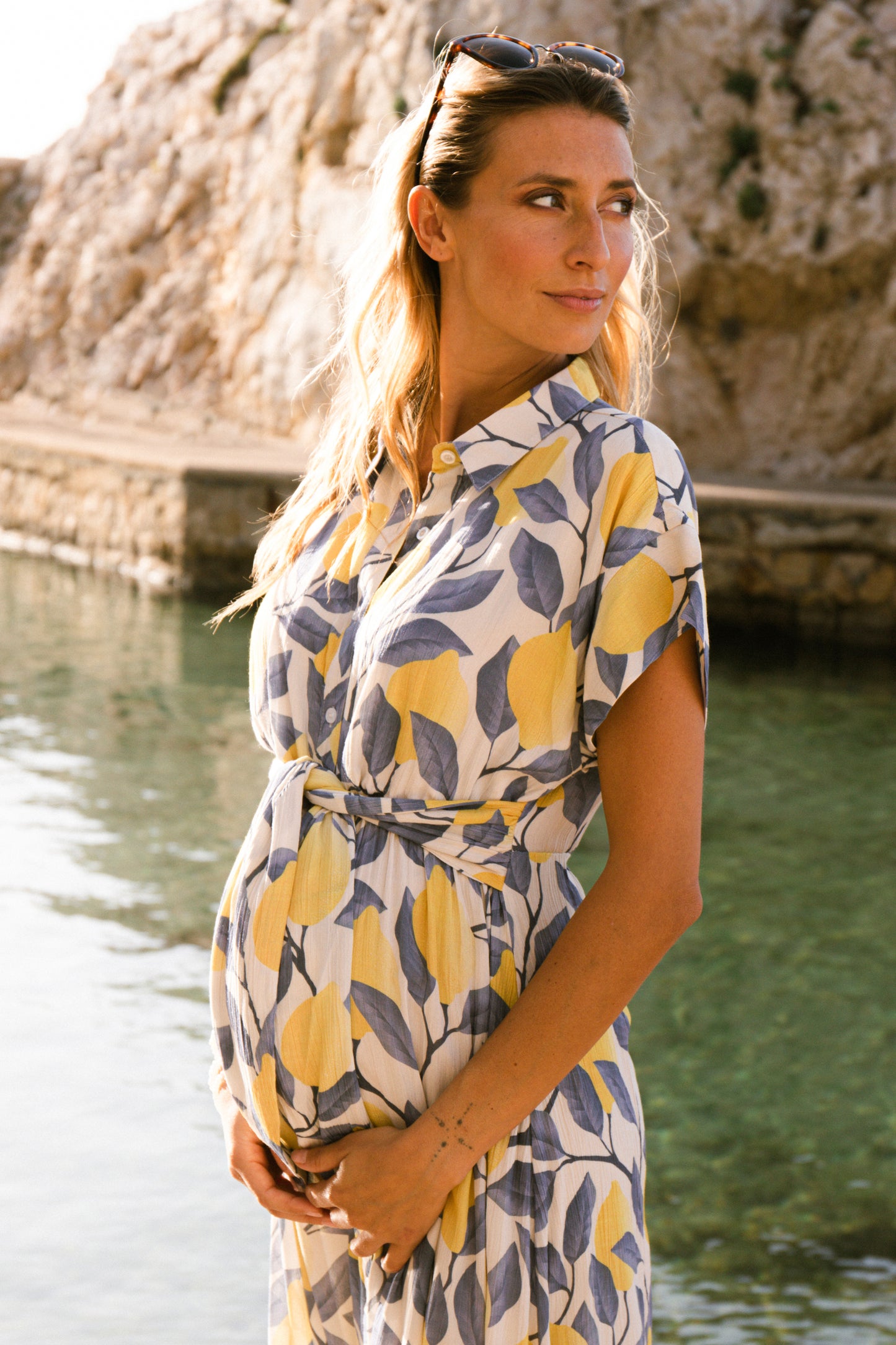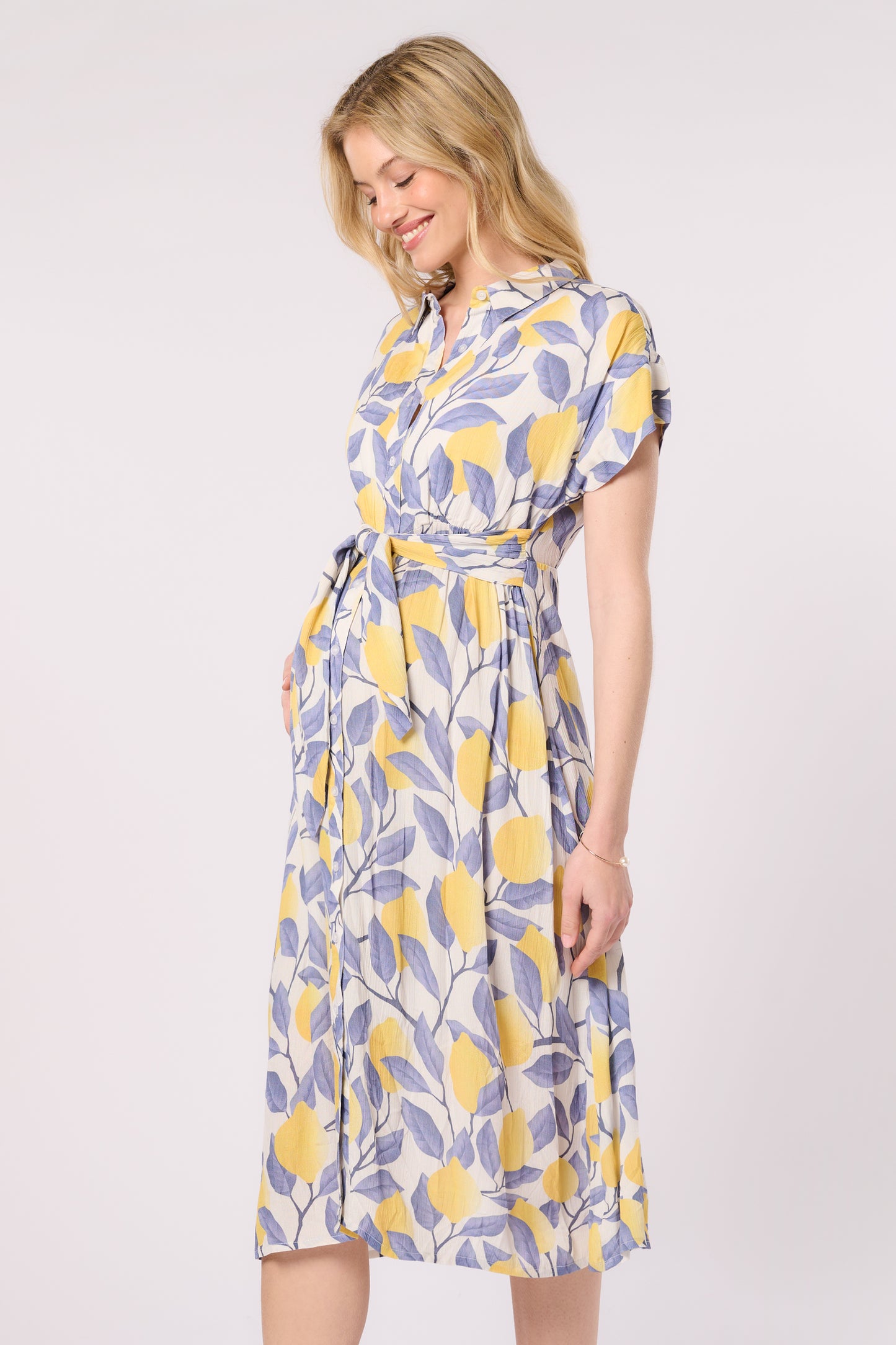 Midi langes Umstands- und Still-Hemdblusenkleid aus reiner Viskose mit Kragen und Knopfleiste. Mit den integrierten Bändern kannst du dein Outfit individuell stylen und deine Silhouette betonen. Nach der Geburt hast du einen diskreten Stillzugang über die Knopfleiste.