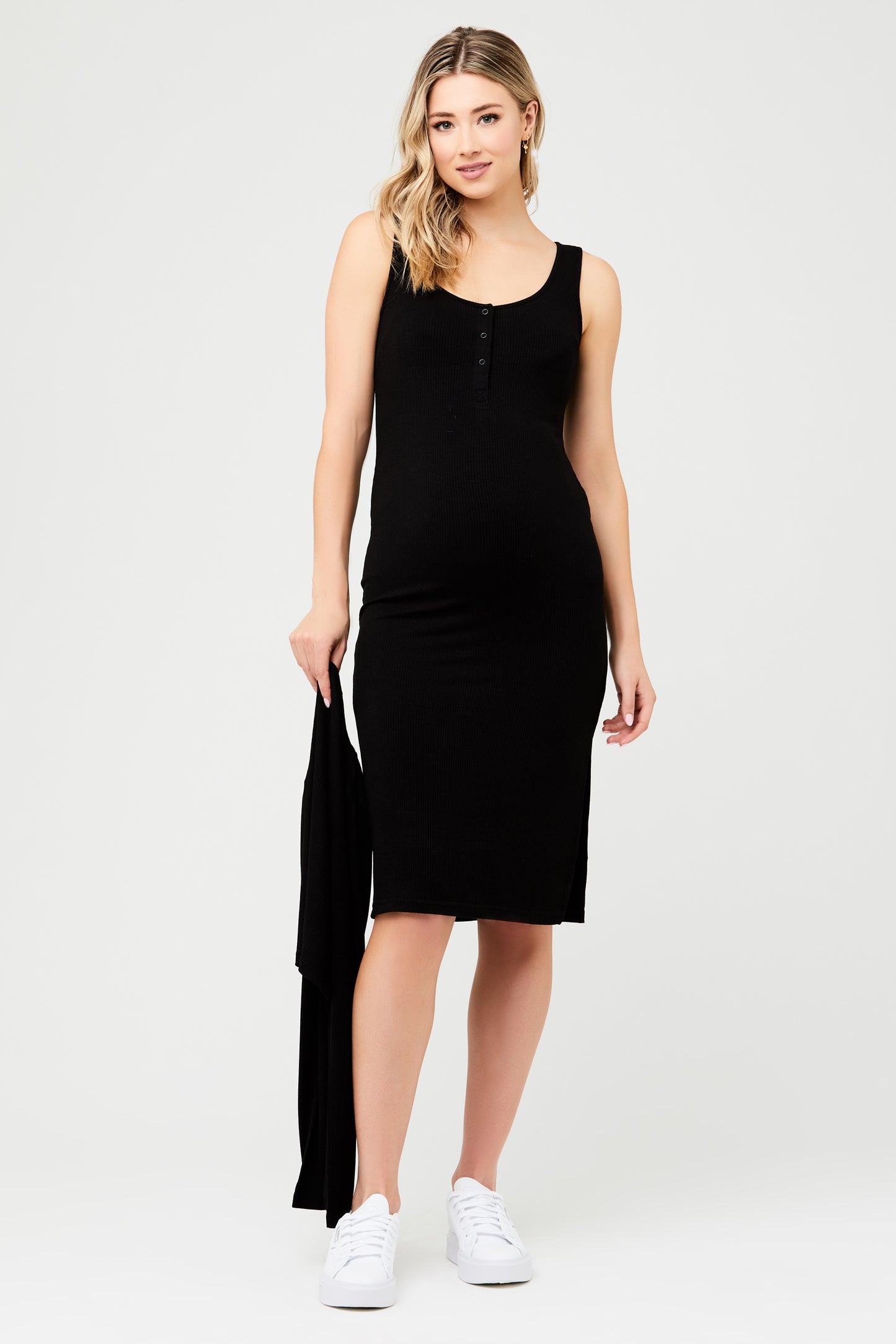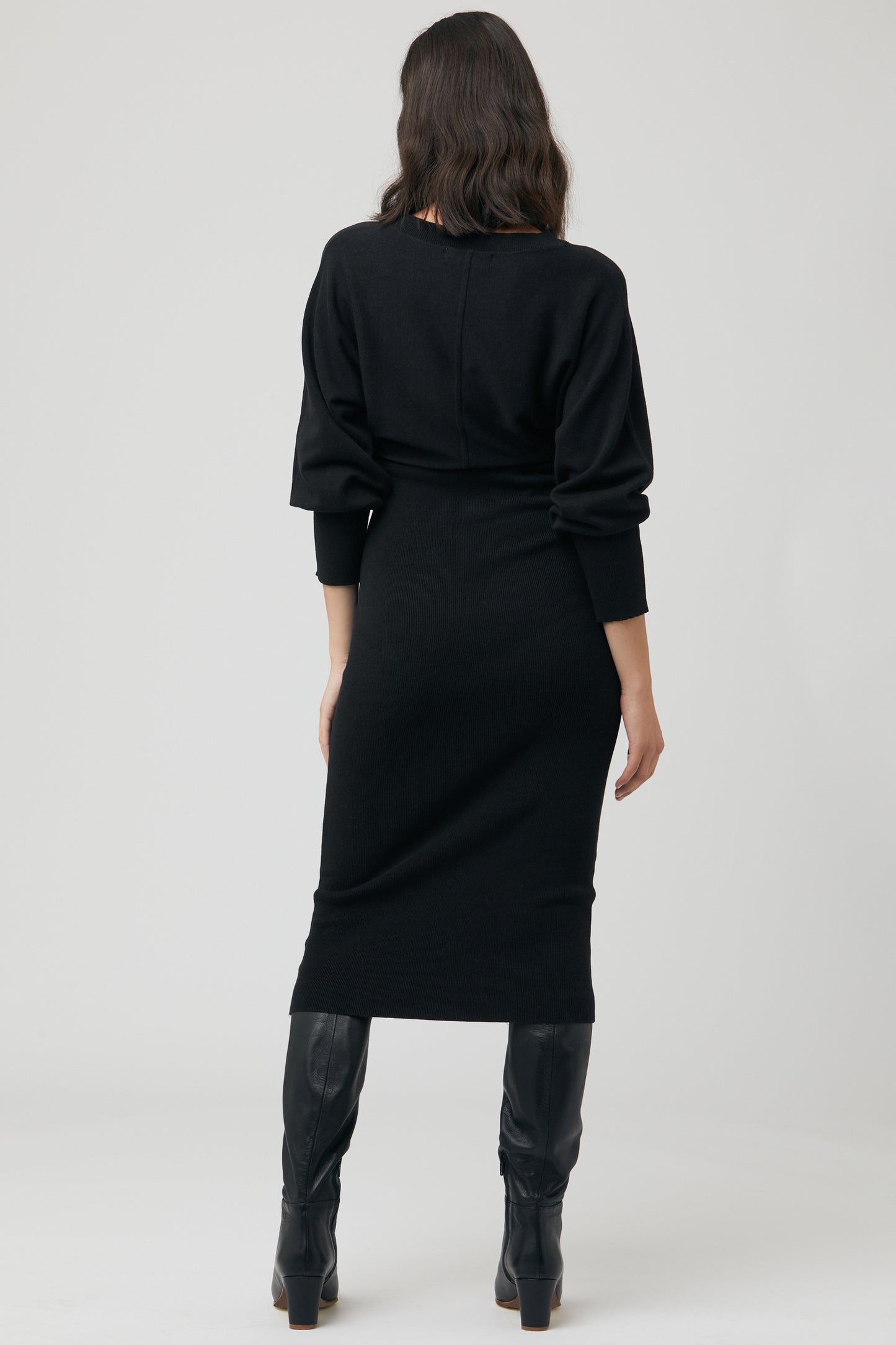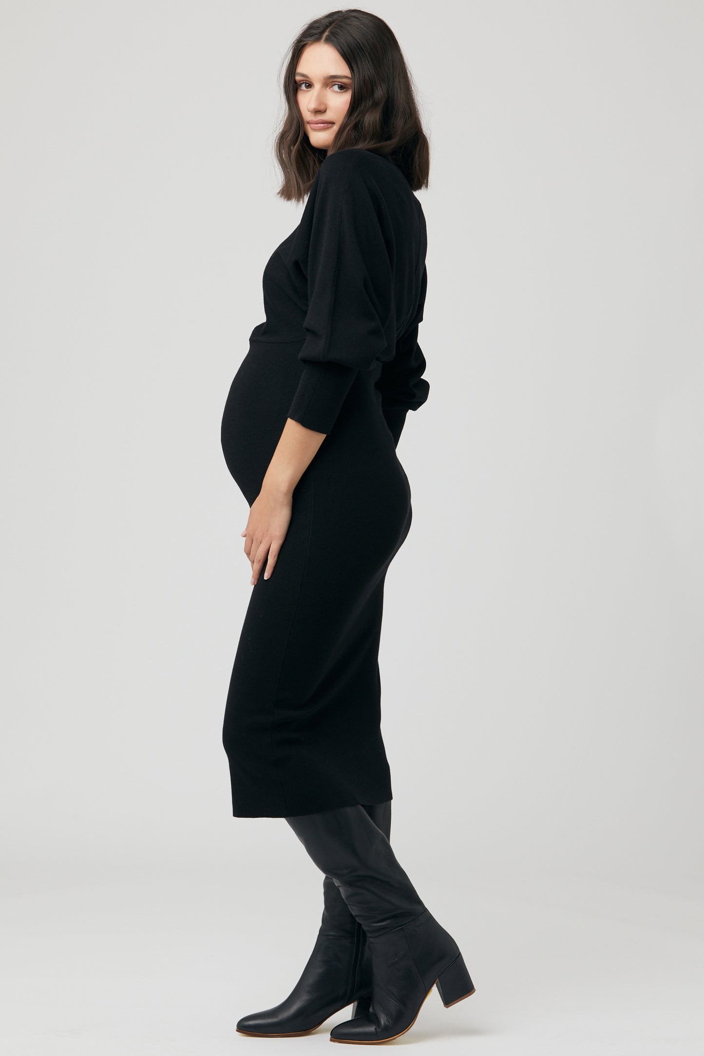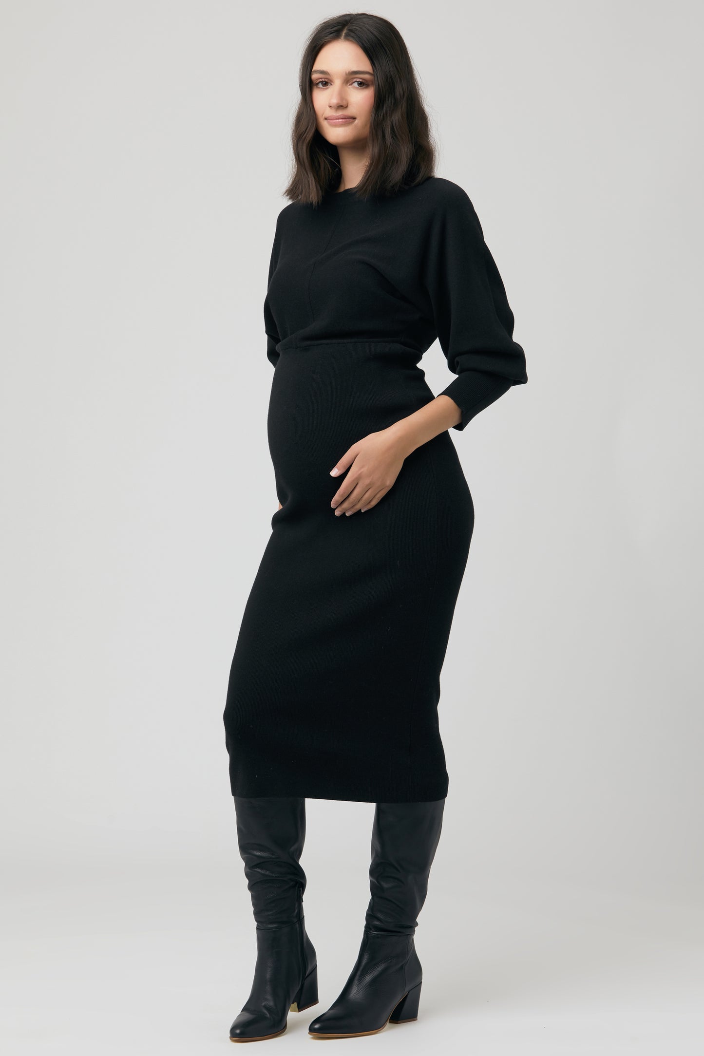 Umstands- und Stillstrickkleid mit figurbetontem Schnitt und Batwingärmeln. Der Reißverschluss am Ausschnitt ermöglicht einen diskreten Stillzugang