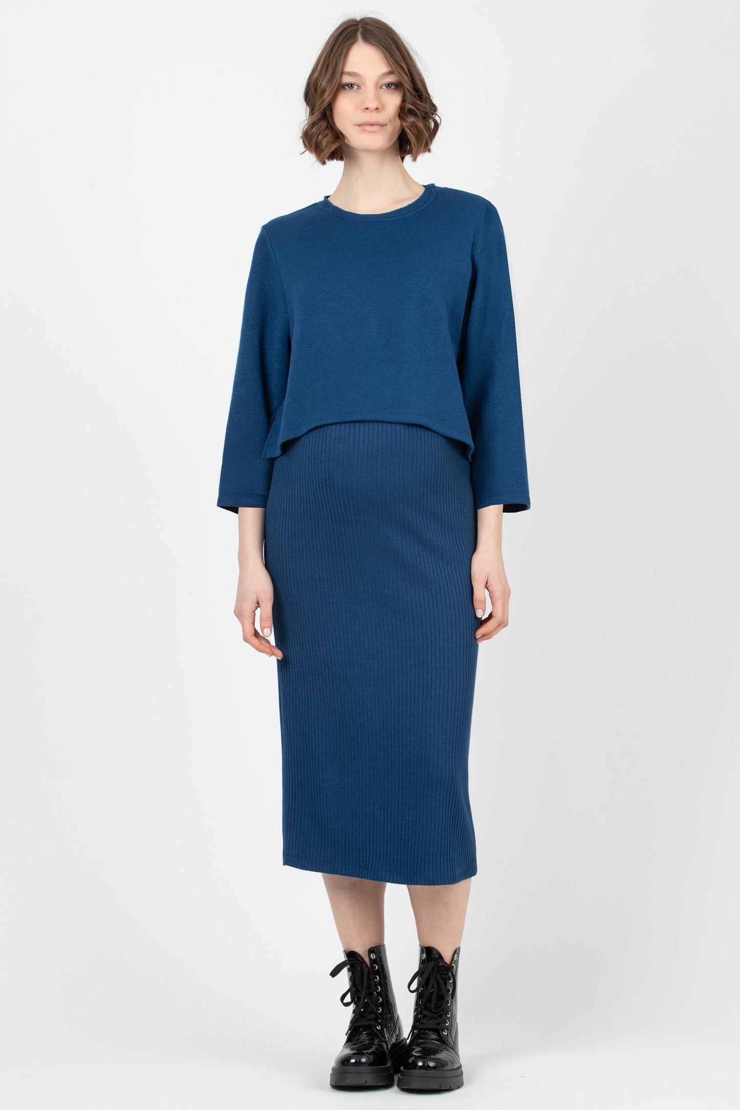 Langärmeliger Umstandspullover mit Cross-over Detail aus samtweichem Material. Die überkreuzten Lagen umrahmen deinen Babybauch und schaffen eine vorteilhafte Silhouette. Durch den elastischen Viskose Strick auch nach der Schwangerschaft ohne Babybauch tragbar