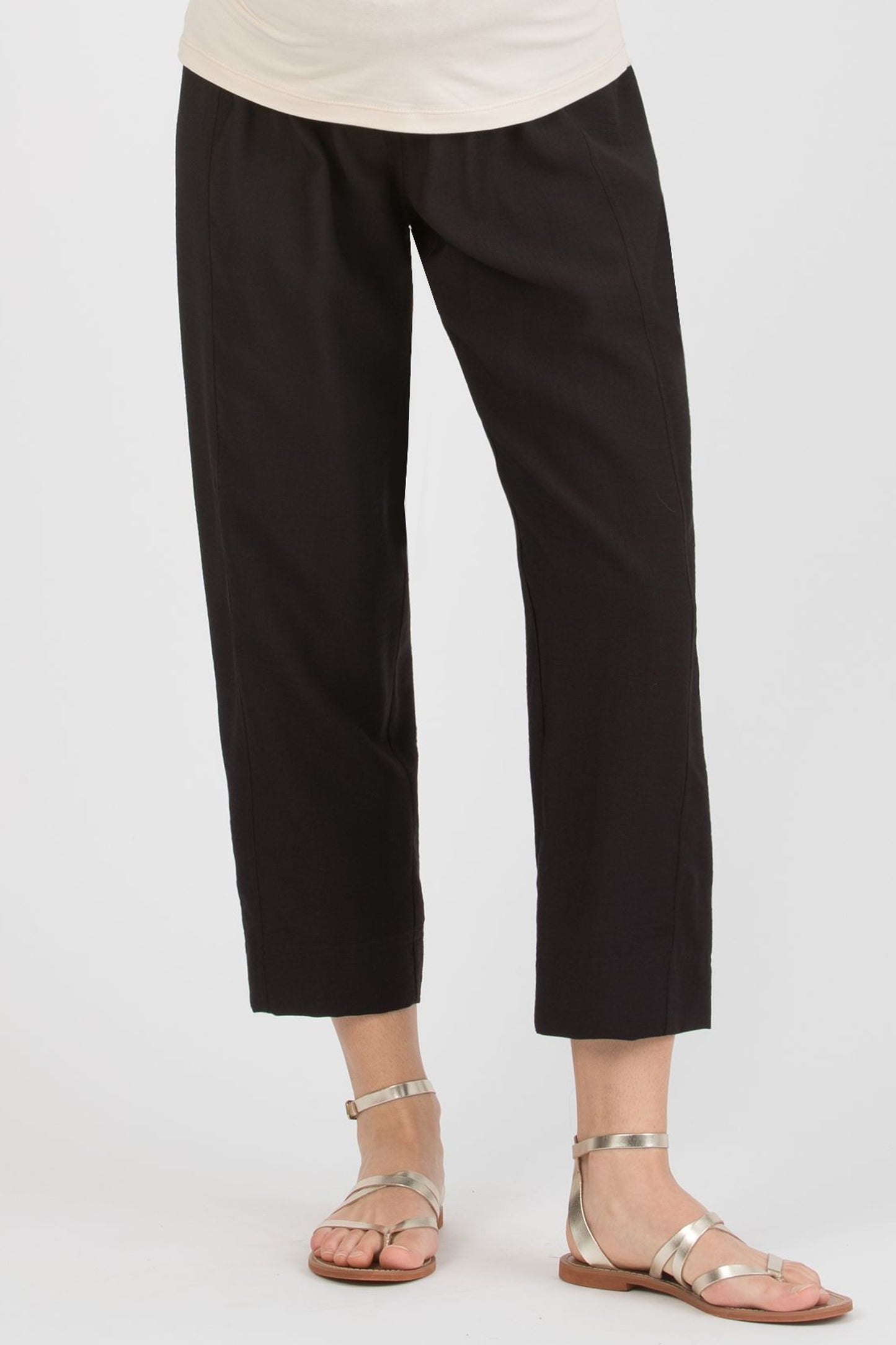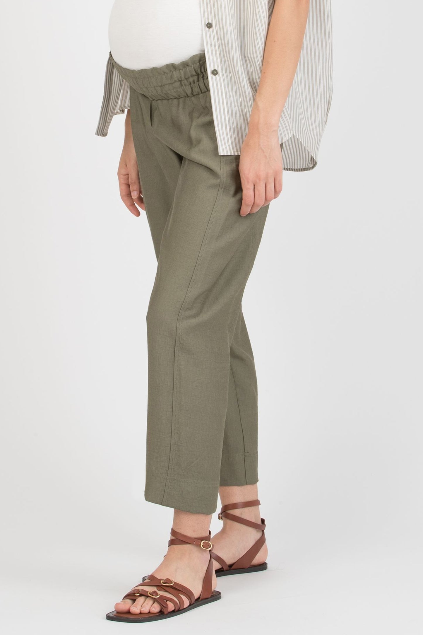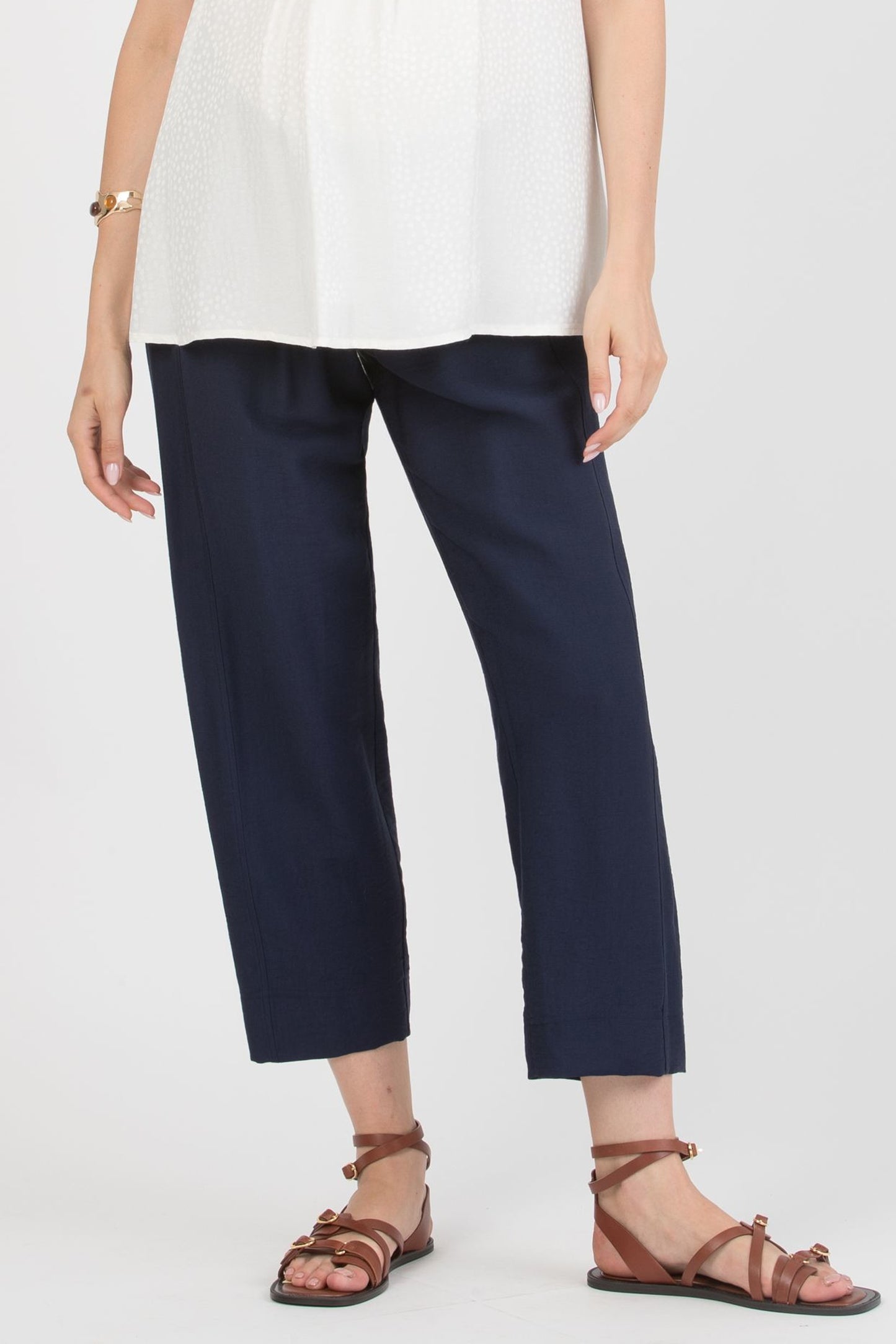 Diese cropped Umstandshose aus leichter Viskose ist wie gemacht für warme Tage. Frontfalten und die verkürzte Länge verleihen ihr eine moderne, luftige Optik, während der niedrige, gesmockte Bund mit doppelter Elastik-Regulierung angenehm unter dem Bauch sitzt. Ein unkompliziertes Sommermodell, das auch nach der Schwangerschaft weitergetragen werden kann.