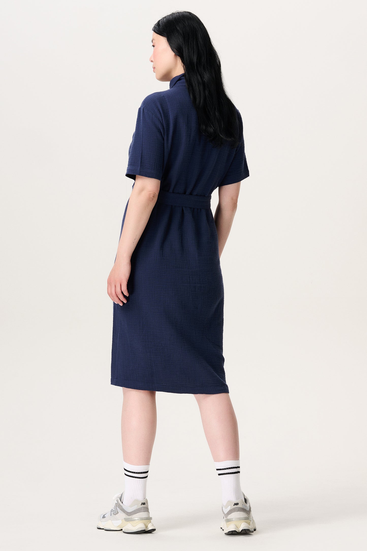 The full-length button placket makes breastfeeding easier, while the classic shirt collar gives the blouse a clean, minimalist look. The short sleeves and soft cotton muslin ensure a comfortable feel and make the blouse an uncomplicated companion for everyday life and the office – during pregnancy and beyond.