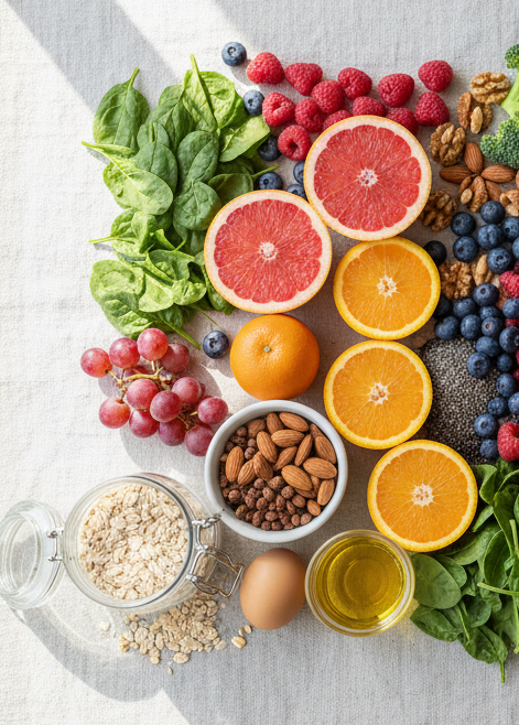 Frische Früchte und Gemüse, Vollkornprodukte, Hülsenfrüchte, Eier, Nüsse, gute Öle und Fisch gehören zu den wahren Powerfoods in dieser Zeit. Aber genauso wichtig: Genießen! Ein Stück Kuchen oder Chips auf dem Sofa machen dich nicht zu einer schlechteren Mama – sie machen dich menschlich.