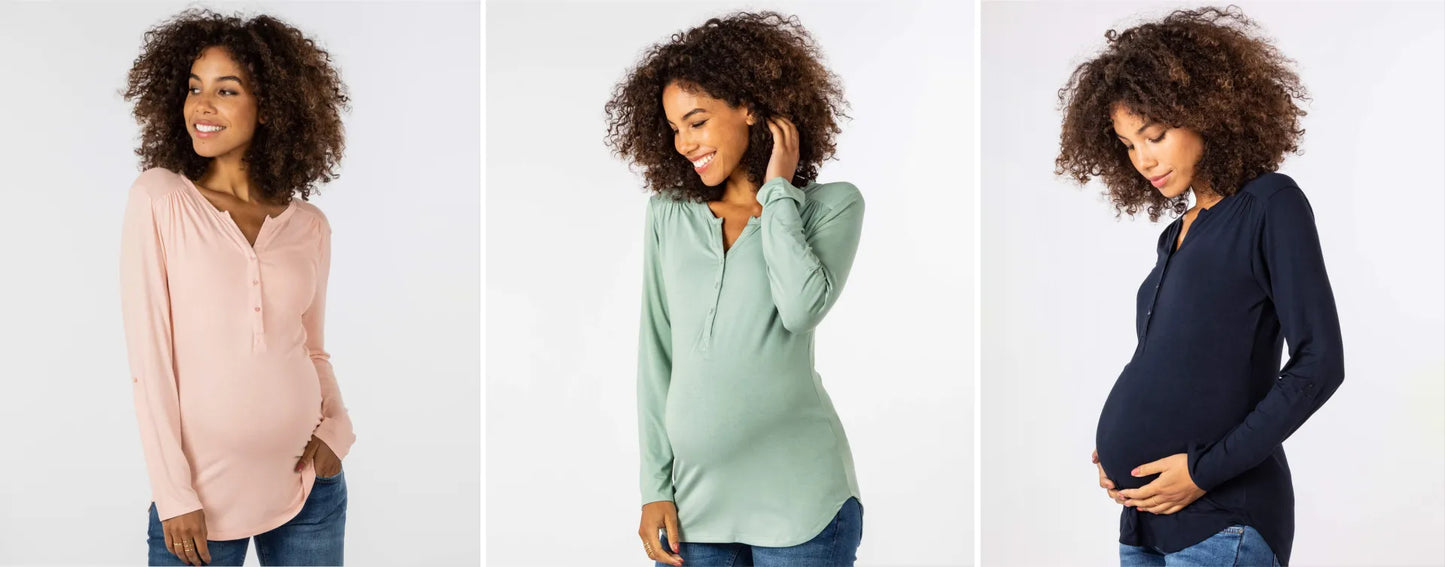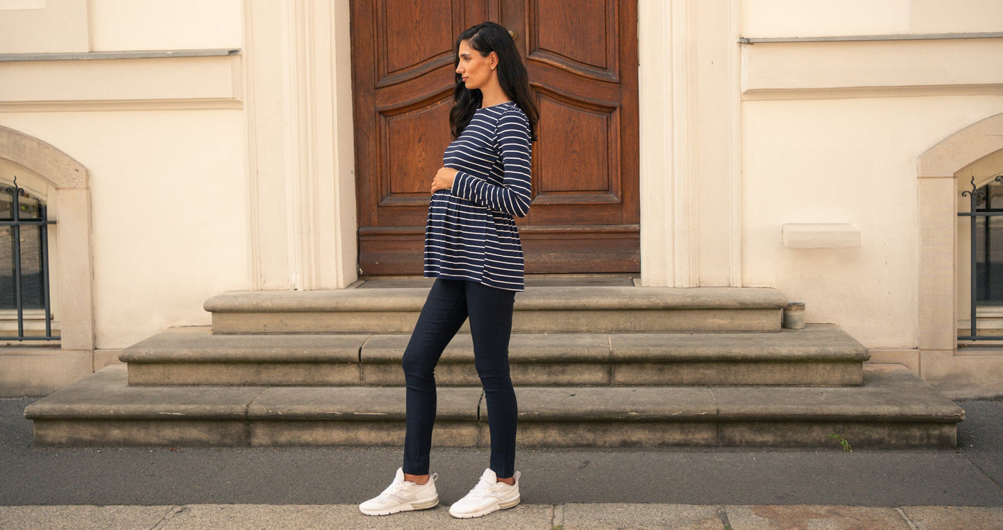 Unsere Umstandsmode ist in vielen Fällen mit dezent versteckten Stillöffnungen ausgestattet, sodass du später ganz easy in ihnen stillen kannst. Nach der Geburt brauchst du deine Garderobe also nicht komplett aussortieren und dich neu einkleiden, sondern du trägst deine Favoriten aus der Schwangerschaft einfach weiter – mindestens bis zum Ende der Stillzeit oder sogar noch länger…