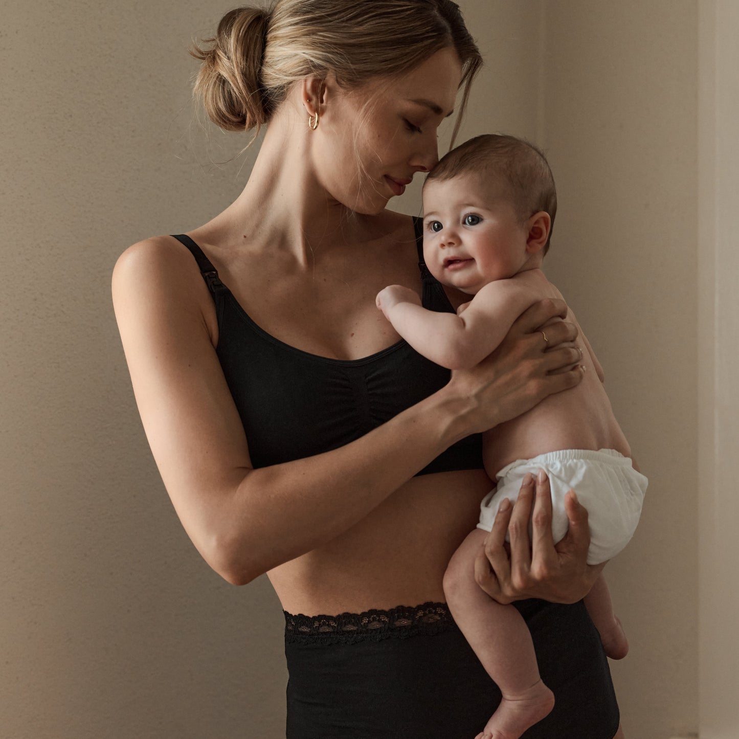 Nach der Geburt steht dein Körper noch ganz unter dem Einfluss der Schwangerschaftshormone. Bänder, Gewebe und Muskeln sind weicher und brauchen Zeit, um wieder an Stabilität zu gewinnen. Eine sanfte Postpartum-Shapewear kann dich in dieser Phase unterstützen, indem sie deinem Bauch- und Rumpfbereich Halt gibt, der Körpermitte mehr Struktur verleiht und dir so ein angenehmes Gefühl von Sicherheit zurückgibt. Viele Mamas berichten, dass sie sich durch Shapewear im Alltag stabiler fühlen – beim Tragen des Babys, beim Stillen, beim ersten Spaziergang oder einfach beim Aufstehen aus dem Bett. Zusätzlich kann sie helfen, dich in deiner Kleidung wohler zu fühlen, ohne dabei Druck aufzubauen oder deinen Körper zu „verändern“. Es geht um Support, nicht um Perfektion.