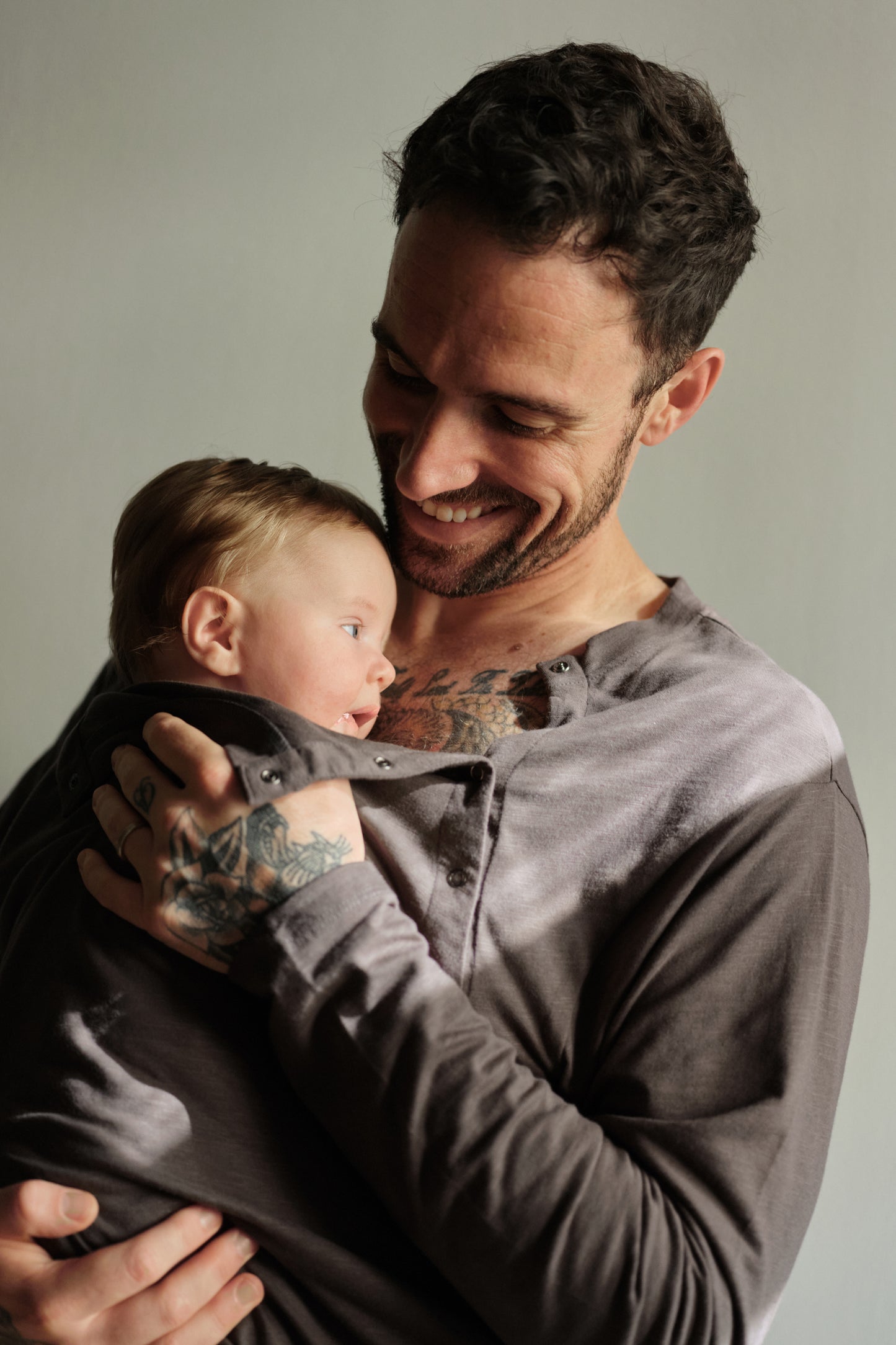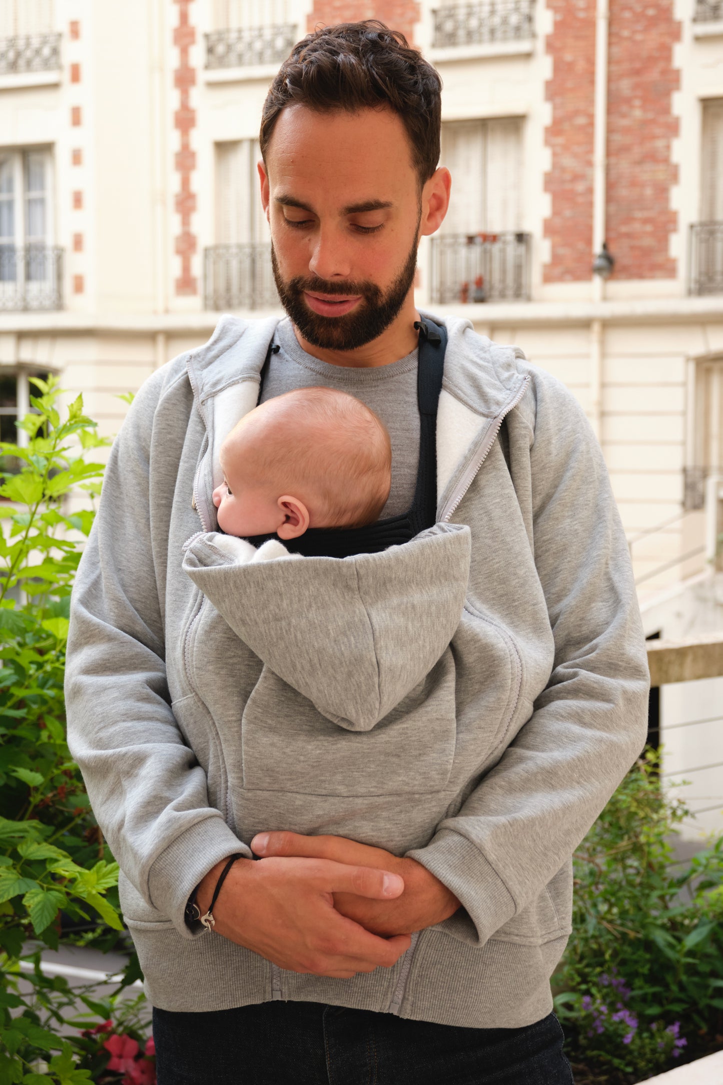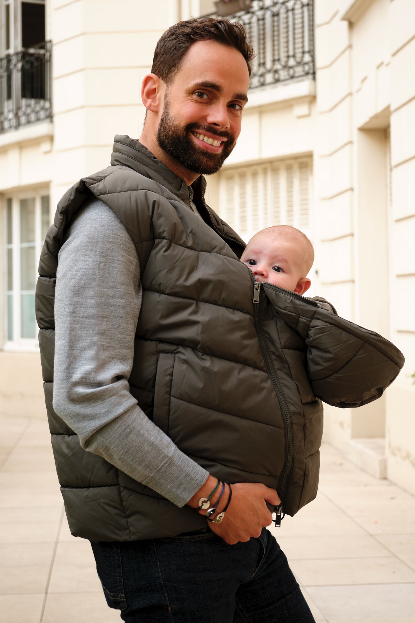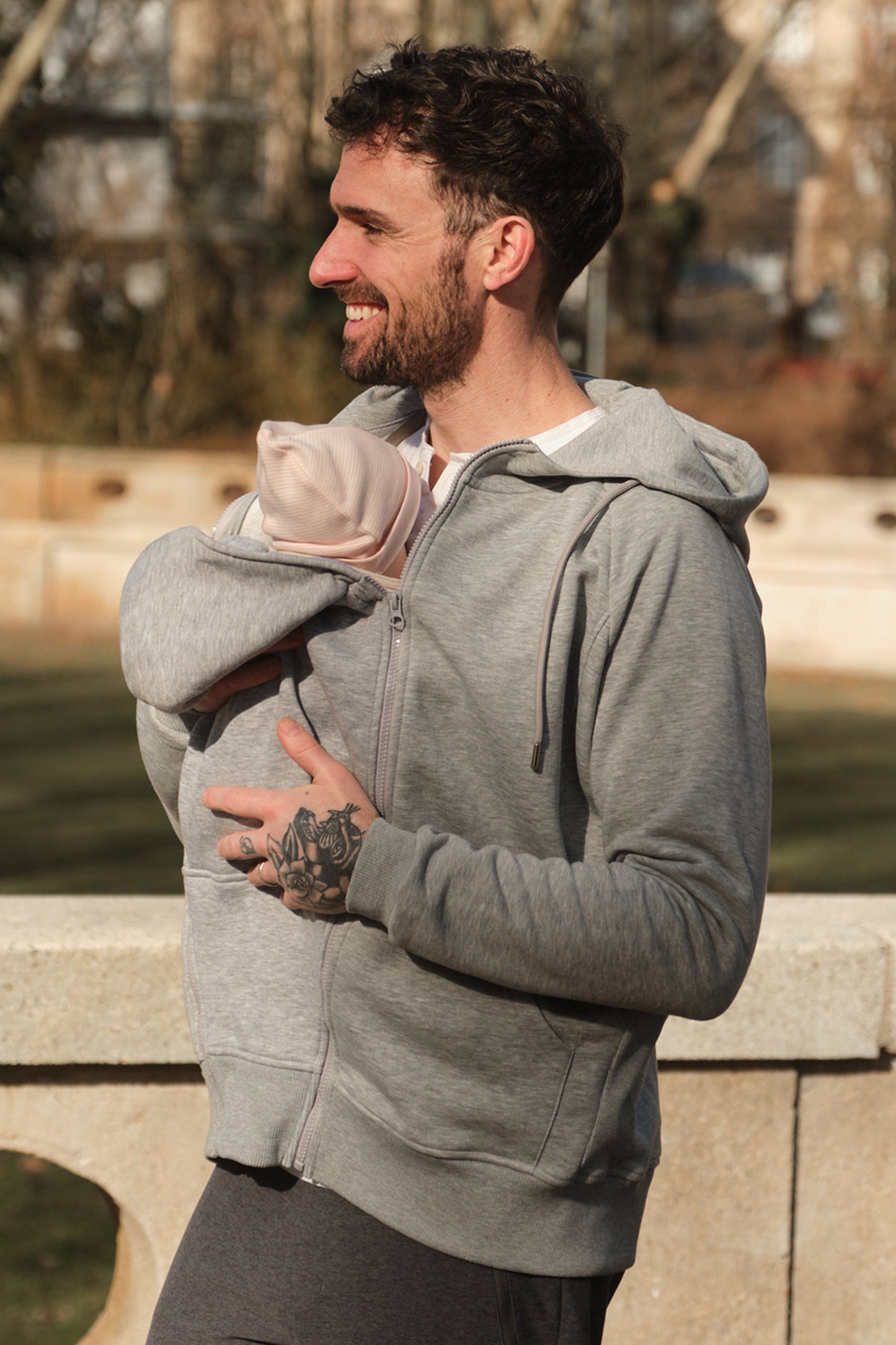 es um Tragejacken mit Babyeinsatz, Papa Baby Bonding Shirts, Papa & Mini Sets oder andere nützliche Accessoires geht.