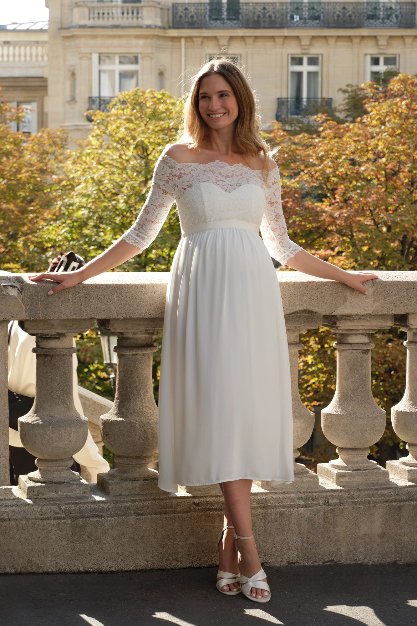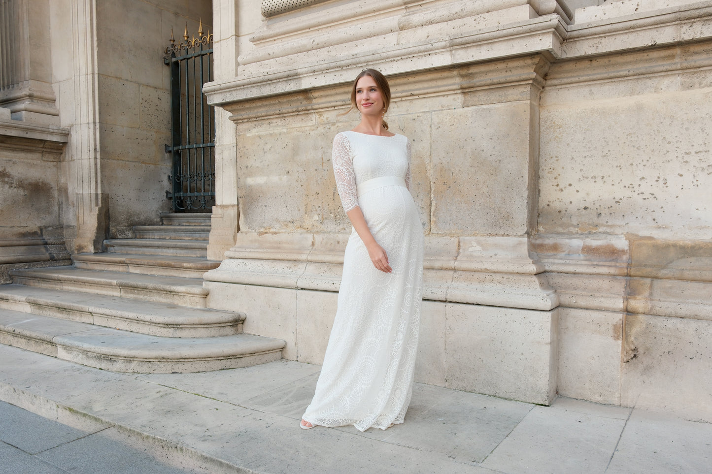 Mit Babybauch bist du natürlich in der Planung zeitlich nicht ganz so flexibel. Falls möglich, empfehlen wir dir zwischen dem vierten und siebten Schwangerschaftsmonat zu heiraten. Unsere Umstandsbrautmode ist extra so geschnitten, dass sie sich deinem wachsenden Bauch während der gesamten Schwangerschaft anpasst. Du kannst dein Schwangerschaftsbrautkleid daher auch schon einige Zeit vor der Hochzeit bestellen. In unserem Shop findest du auch viele Umstandsbrautkleid Modelle in Plus Size, die besonders bequem geschnitten sind und sich ideal an deinen Körper anpassen.