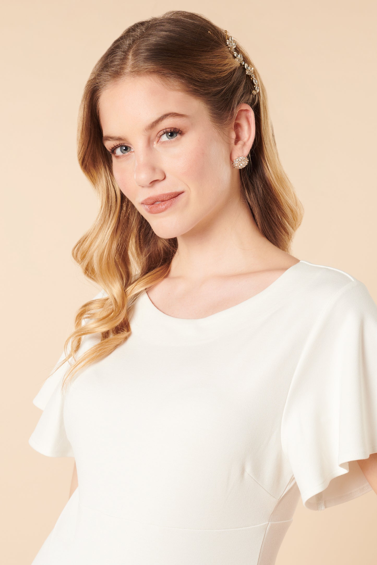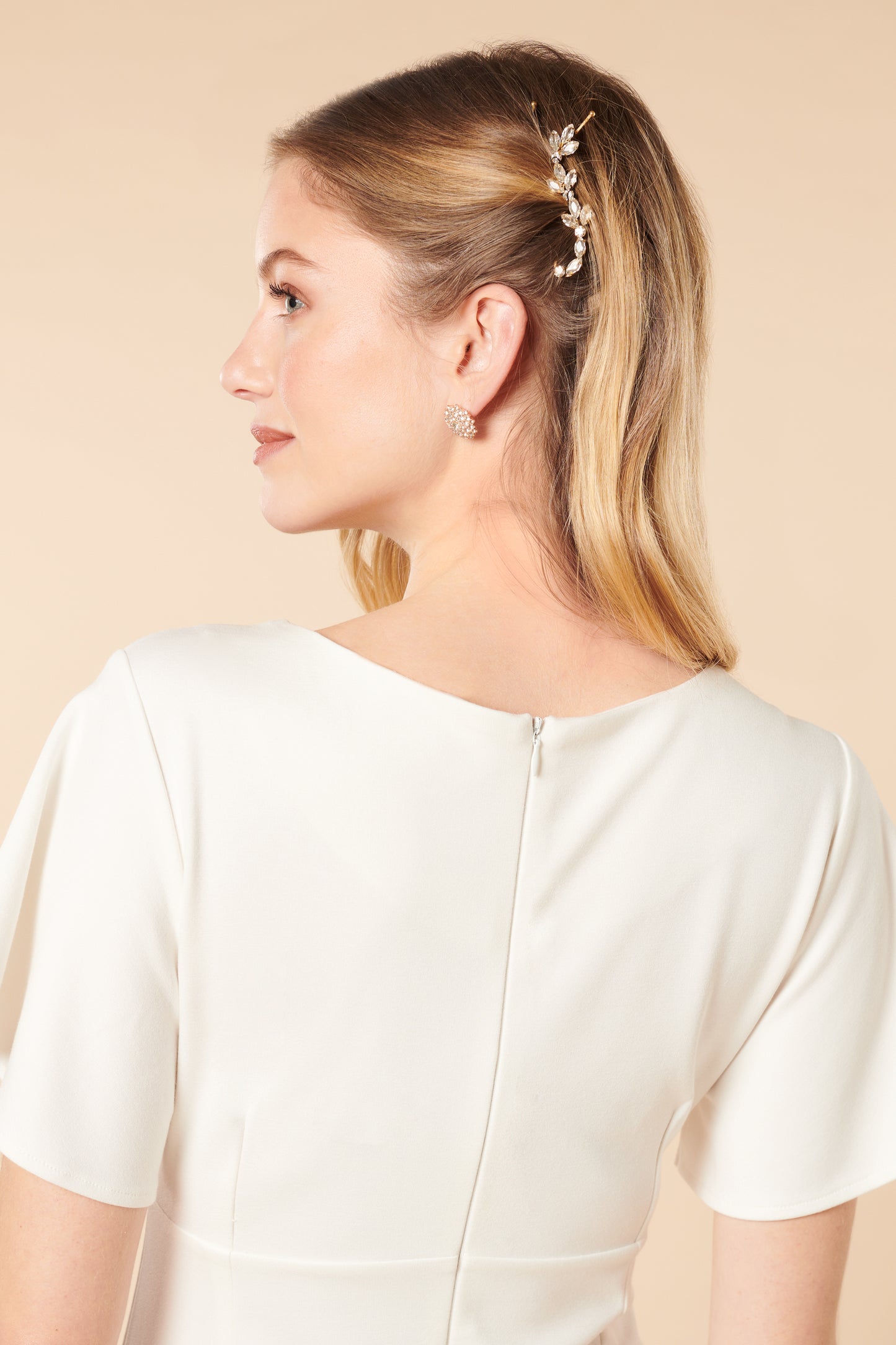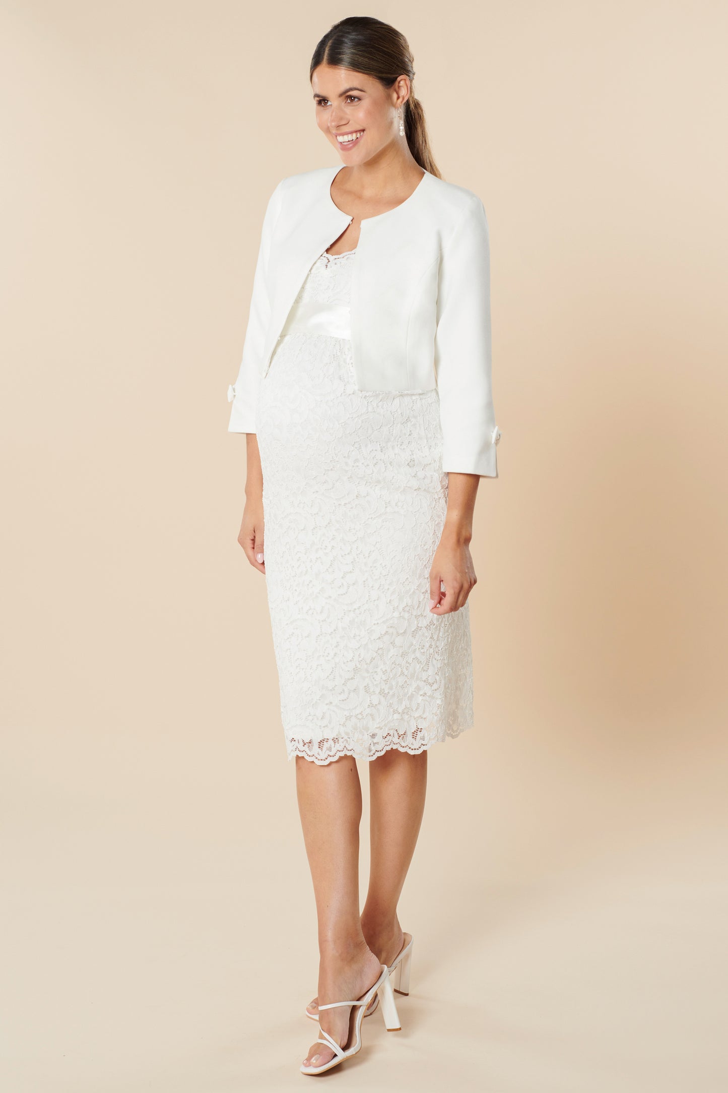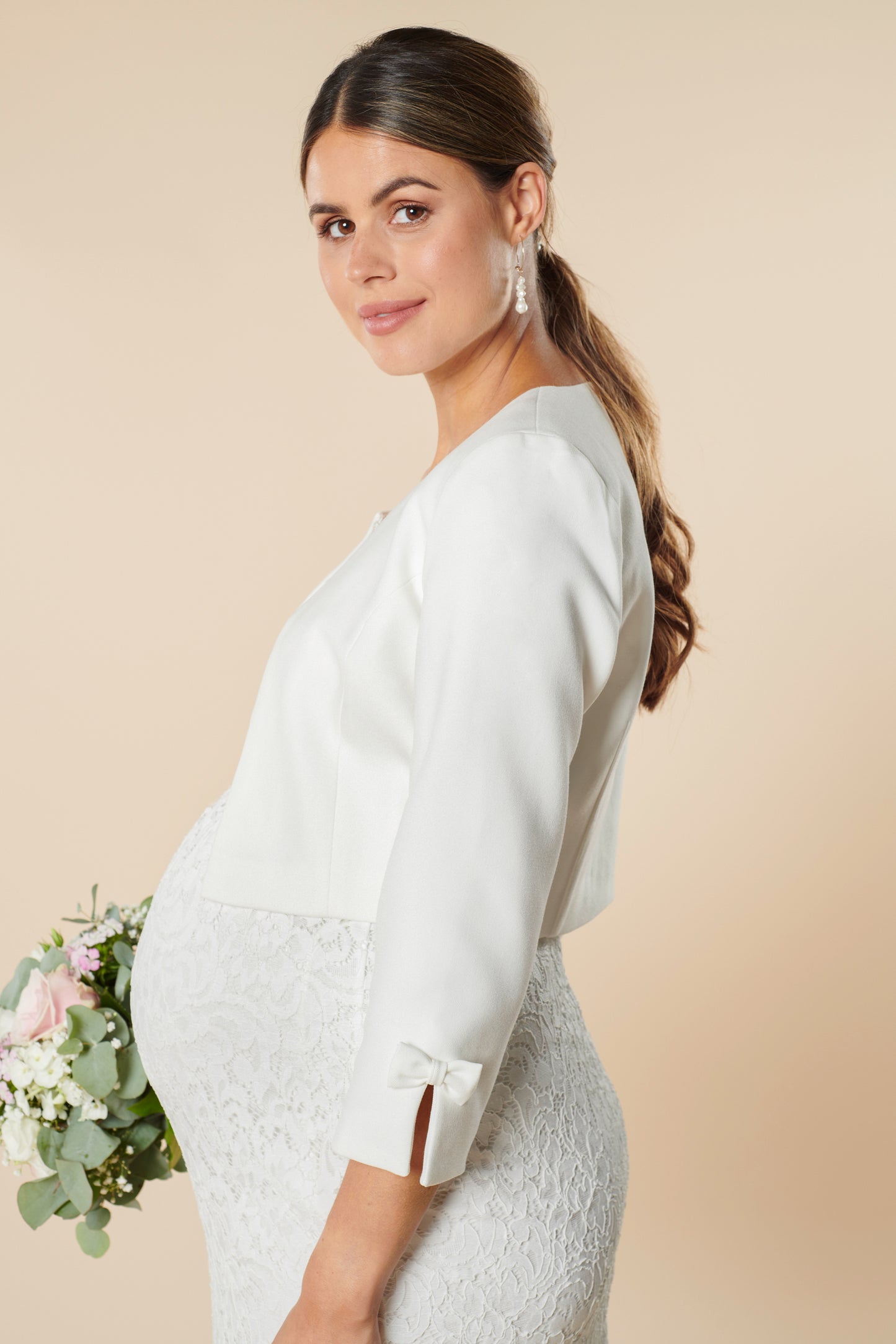 Exklusive Umstandsbrautrobe aus feinstem Chiffon aus unserer Bridal Luxe Linie, veredelt mit edlen Spitzenapplikationen. Vorgeformte Cups im Oberteil und ein tiefer V-Ausschnitt schaffen ein wunderschönes Dekolletee. Der Rock aus mehreren Lagen Chiffon und einem samtweichen Baumwolle Futter fällt fließend bis zum Boden und unterstreicht die klassische A-Linien-Silhouette. Im Rücken befindet sich ein tiefer Ausschnitt, der mit einem verdeckten Reißverschluss geschlossen wird.