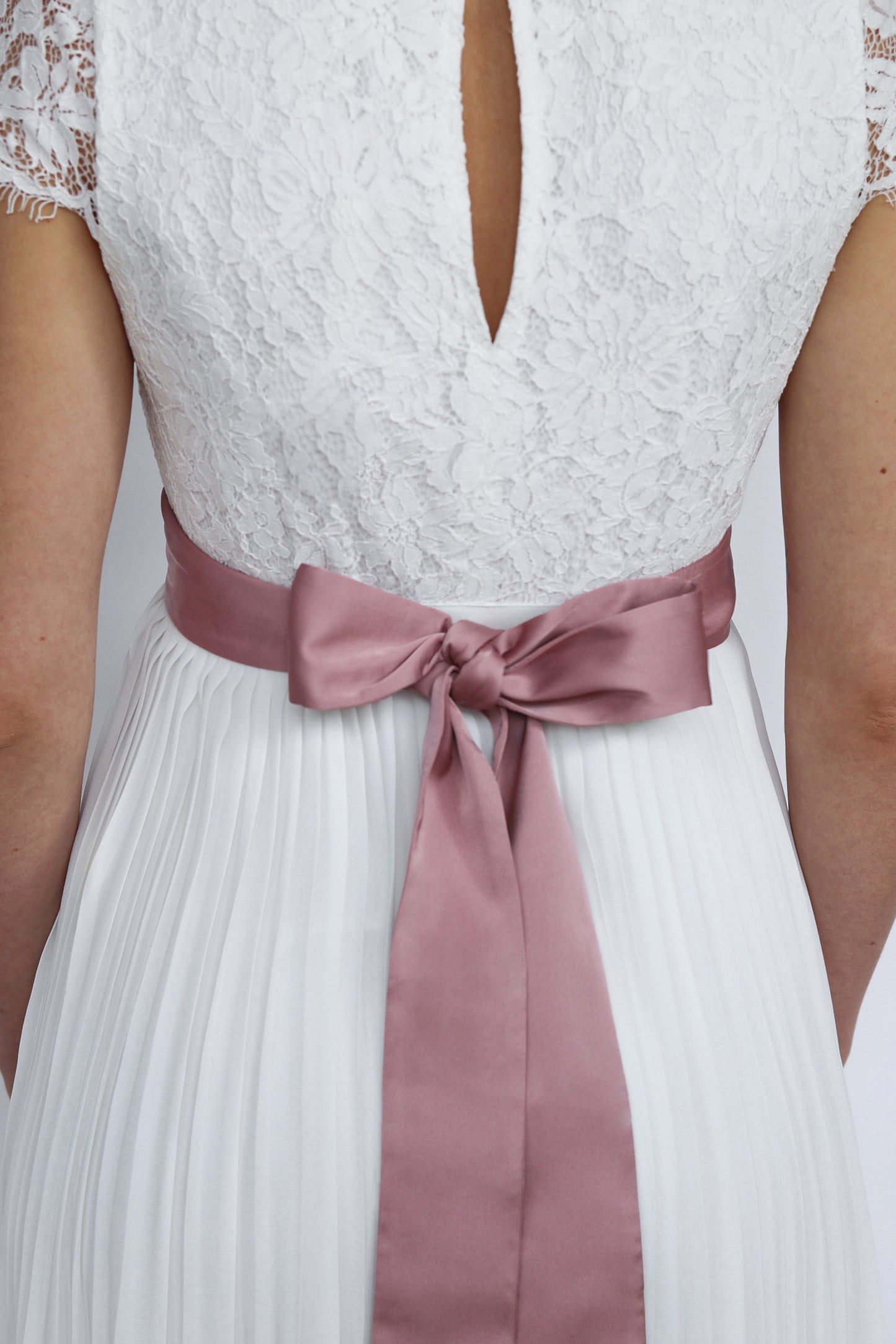 Hier findest du unsere Chiffon Brautkleid Schleppe mit Taillenband und Satinschleife