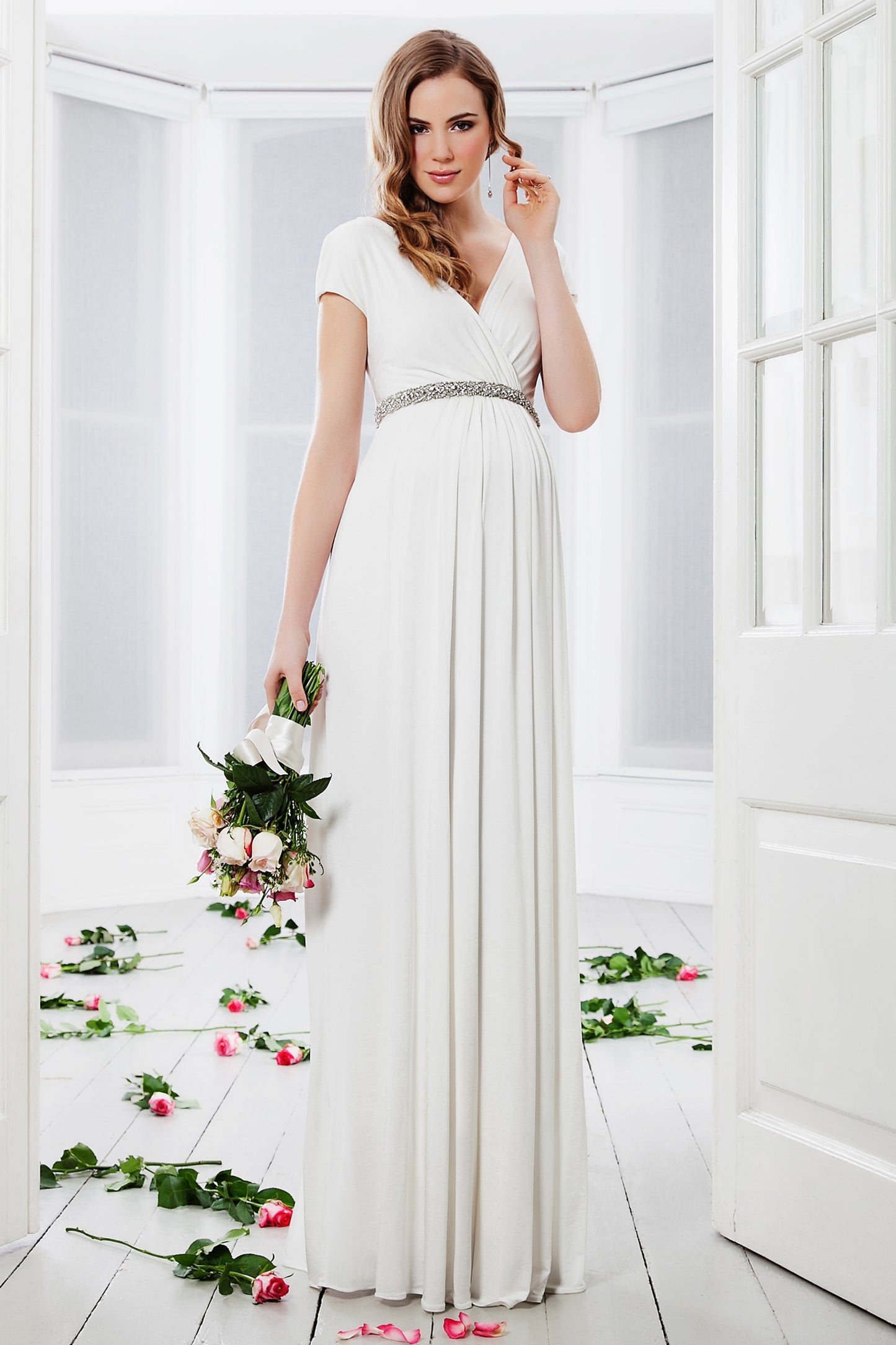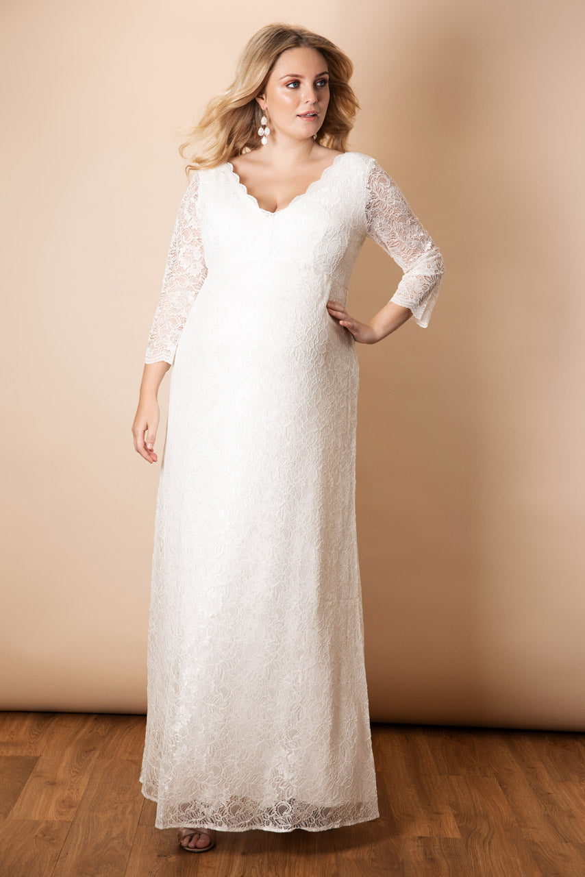 Umstandsbrautkleid mit Spitzenärmeln lang