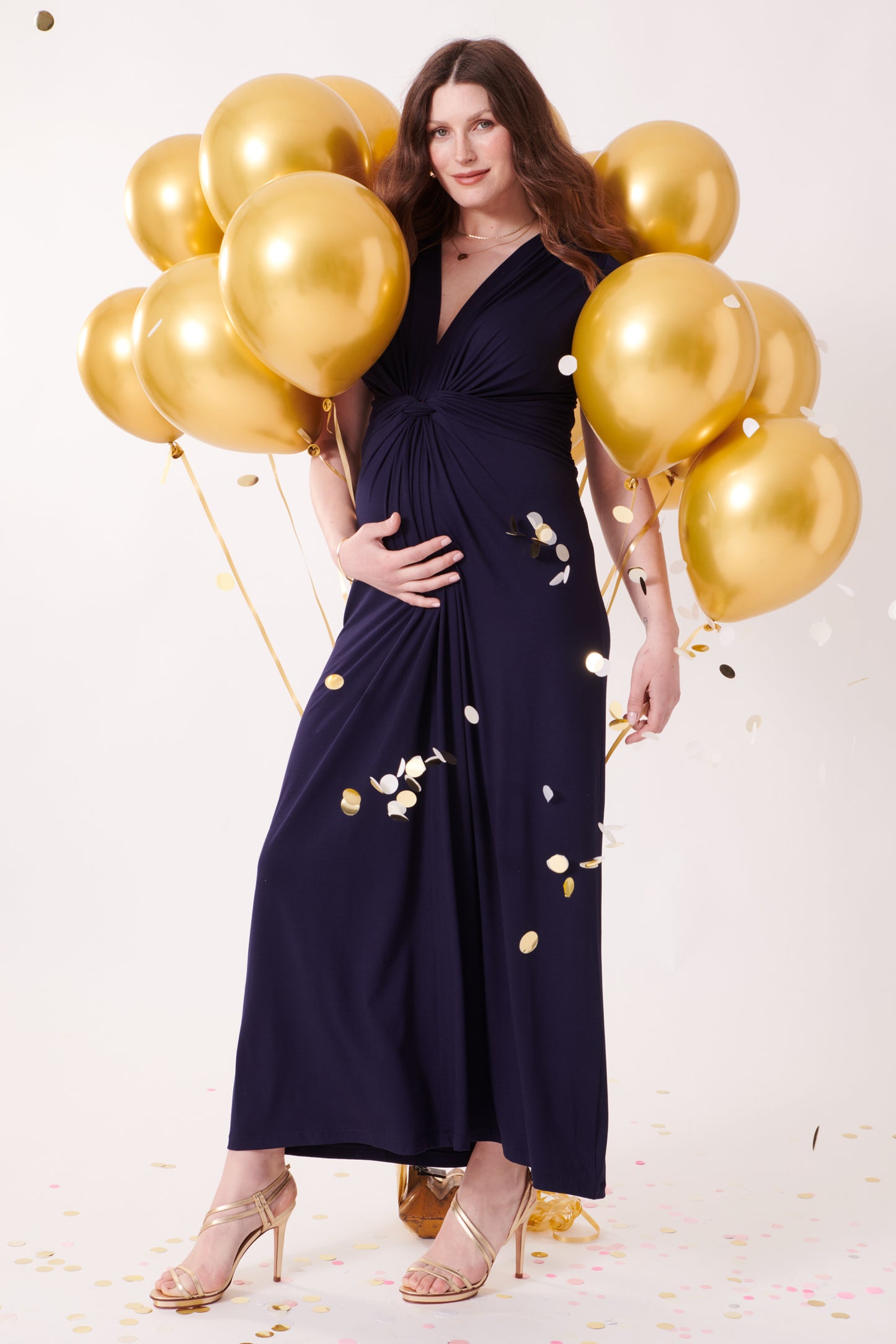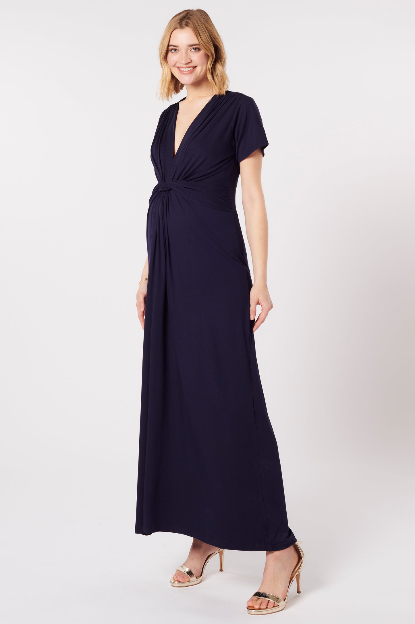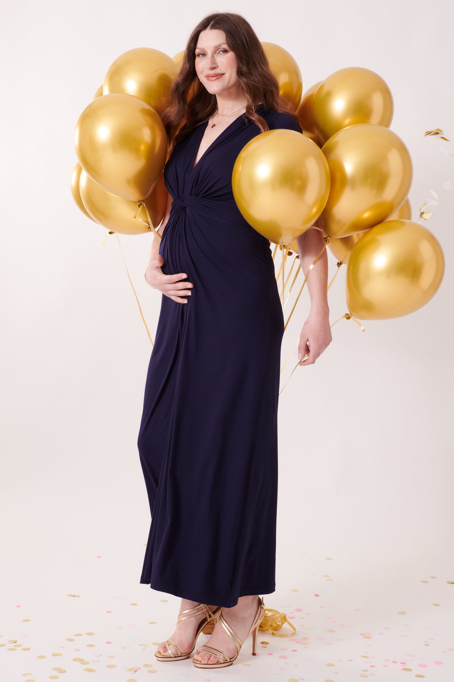 Umstands- und Stillkleid aus nachhaltiger *EcoVero™ Viskose mit Knotendetail unter der Brust, 3/4 Ärmeln, Raffungen und modernem Print. Der weiche Stoff sorgt für ein angenehmes Tragegefühl und passt sich deiner Silhouette an. Ideal für Schwangerschaft und Stillzeit. Hier findest du das Kleid auch mit Polka Dot Print