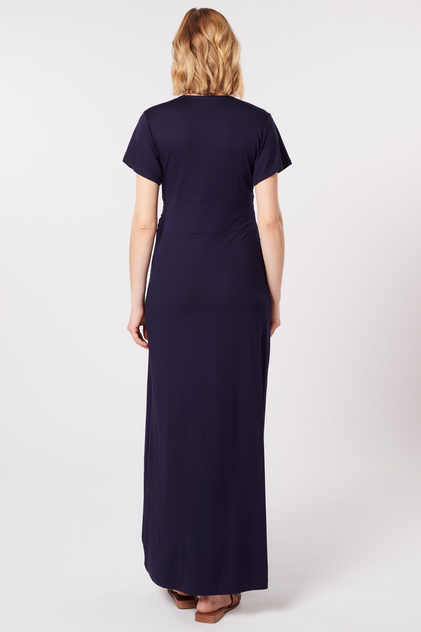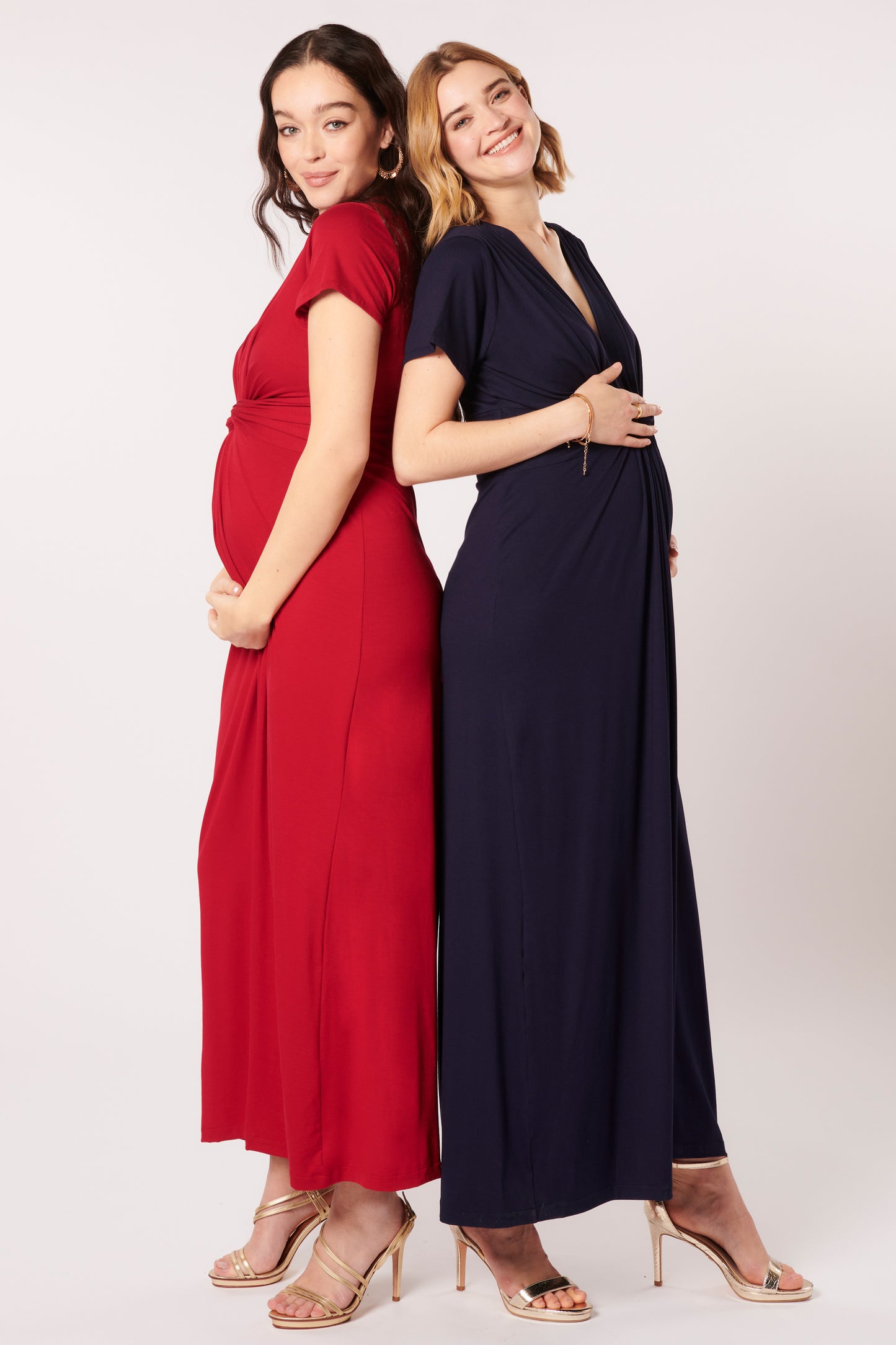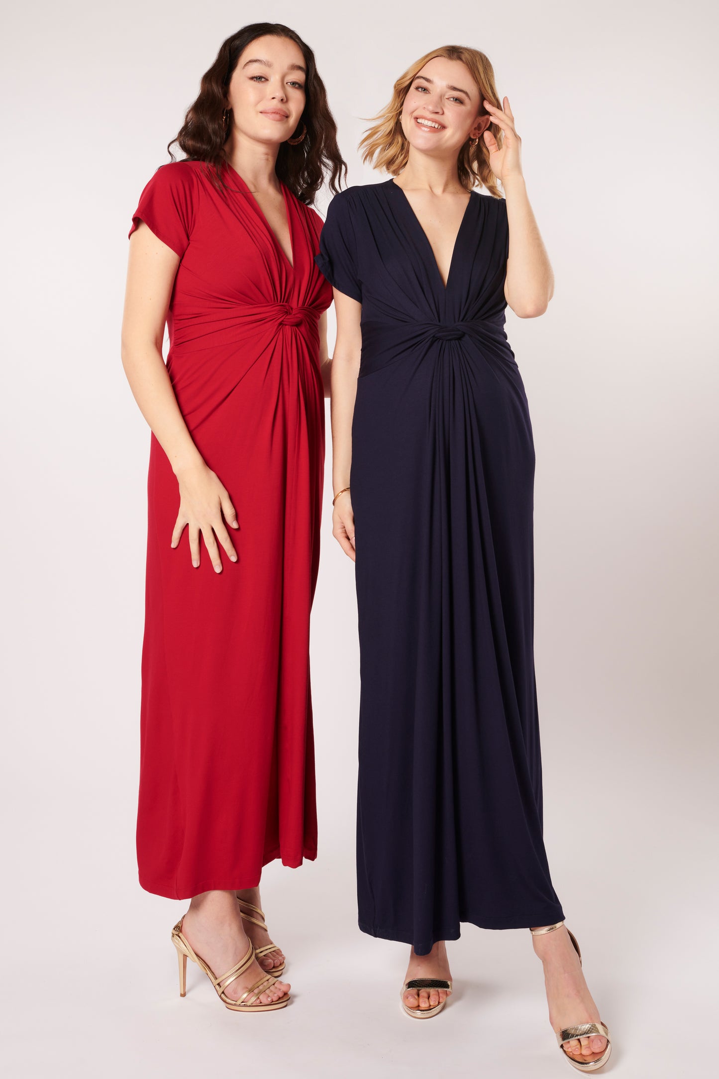 Umstands- und Stillkleid aus nachhaltiger *EcoVero™ Viskose mit Knotendetail unter der Brust, 3/4 Ärmeln, Raffungen und modernem Print. Der weiche Stoff sorgt für ein angenehmes Tragegefühl und passt sich deiner Silhouette an. Ideal für Schwangerschaft und Stillzeit. Hier findest du das Kleid auch mit Polka Dot Print