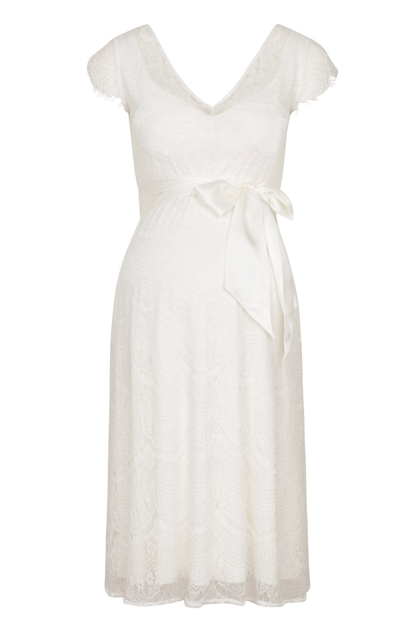 Hier findest du das Kleid in Größe 34-46: Umstandsbrautkleid mit Herzdekolleté